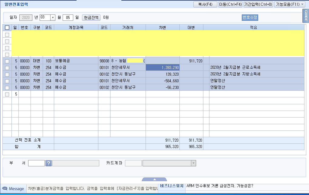 연말정산 분개 작성자주황규|작성시간21.03.04|조회수469 목록 댓글 0 글자크기 작게가 글자크기 크게가 2월분 급여대장에 연말정산반영 안한 경우 소득자료제출집계표(관리용) 필요 다음검색 현재 게시글 추가 기능 열기 북마크 공유하기 신고 센터로 신고 댓글 댓글 0 댓글쓰기 답글쓰기 댓글 리스트