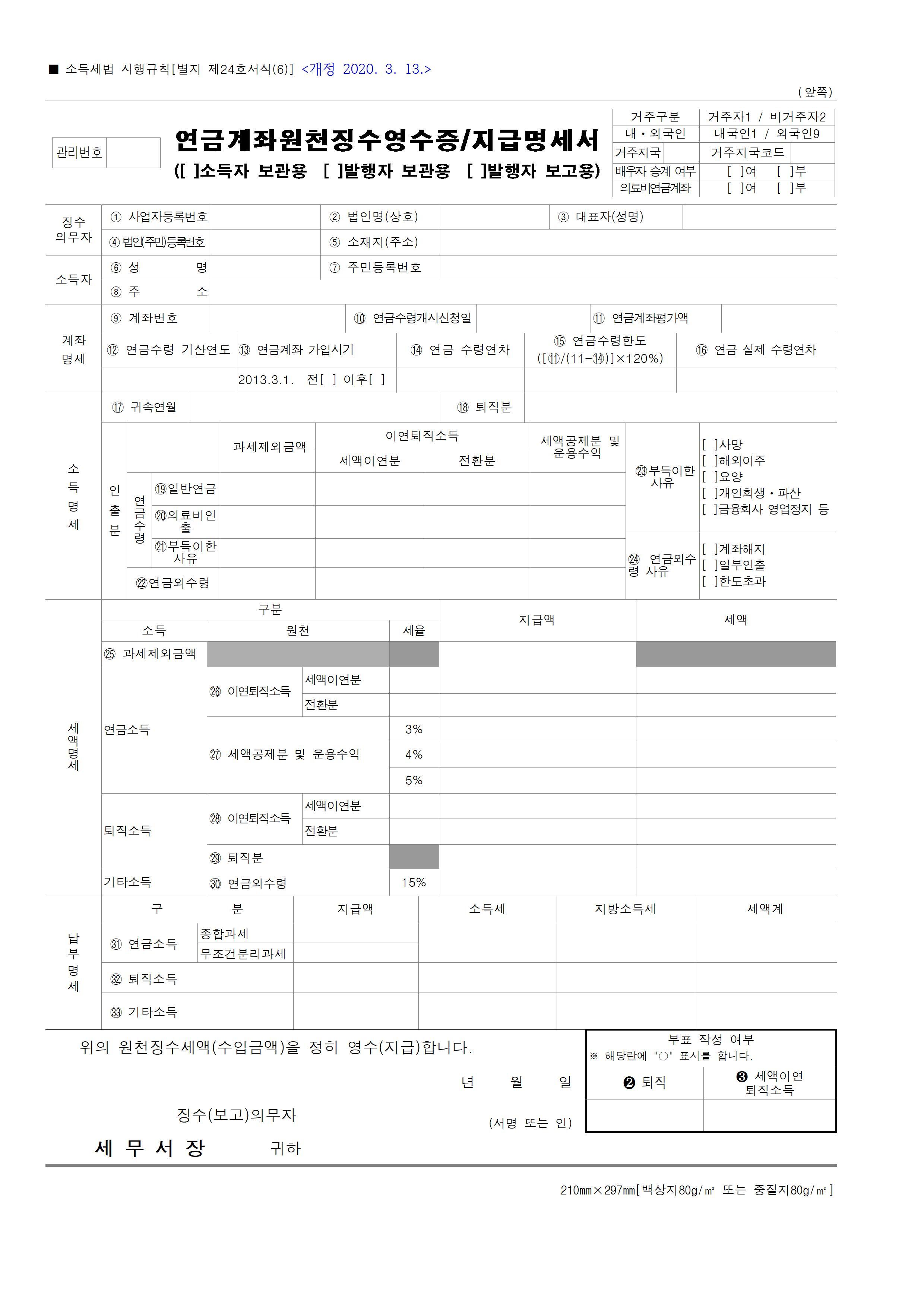 - pdf 파일 [별지 제24호서식] [근로소득 원천징수영수증¸ 근로소득 지급명세서(소득자 보관용¸ 발행자 보관용¸ 발행자 보고용)]¸ 퇴직소득원천징수영수증_지급명세서(소득자 보관용¸ 발행자 보관(소득세법 시행규칙).pdf 다운로드