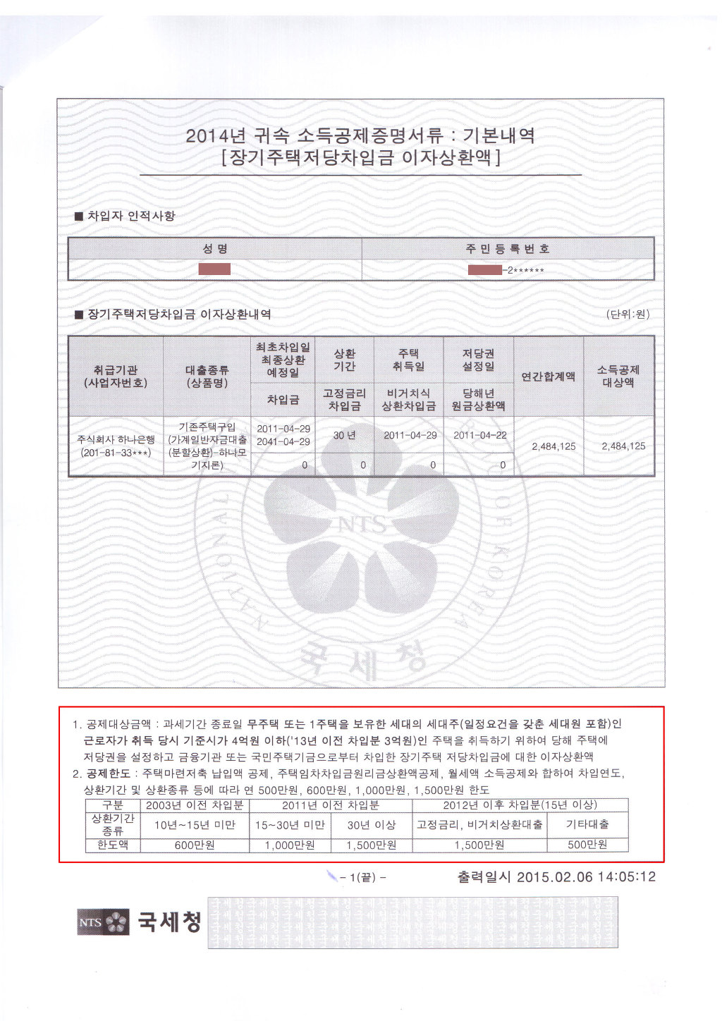 ∙ 2011년 이전 차입분(상환기간 15년 이상 : 연 1,000만원, 30년 이상 : 연 1,500만원 한도)