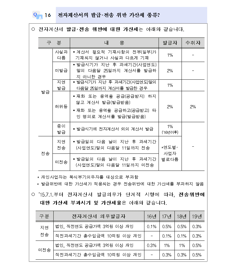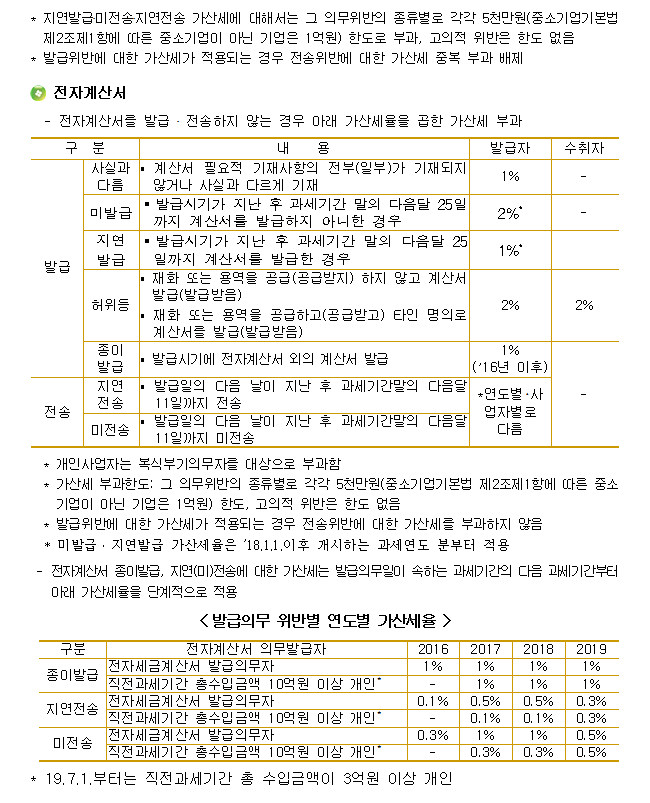 - 공급시기가 속하는 사업연도(과세기간) 말의 다음 달 11일까지 미전송시 | - 다음 달 11일 → 다음 달 25일 |