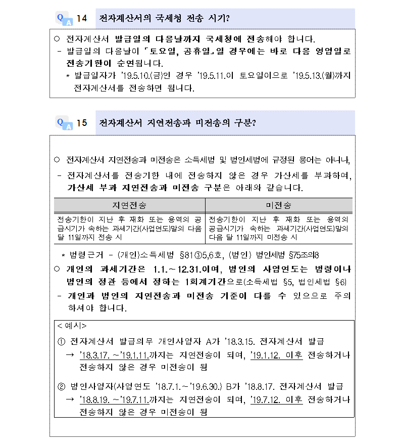 - 공급시기가 속하는 사업연도(과세기간) 말의 다음 달 11일까지 전송시 | - 다음 달 11일 → 다음 달 25일 |