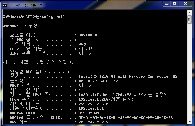 세무사랑2 (뉴젠) 화면 - 메뉴구성 작성자EYEDI|작성시간17.09.09|조회수133 목록 댓글 0 글자크기 작게가 글자크기 크게가 컴퓨터 ip 주소 확인 - 1. 프로그램 - 보조프로그램 - 명령프롬프트2. 프로그램 - 보조프로그램 - 실행 - command ipconfig /all 다음검색 현재 게시글 추가 기능 열기 북마크 공유하기 신고 센터로 신고 댓글 댓글 0 댓글쓰기 답글쓰기 댓글 리스트