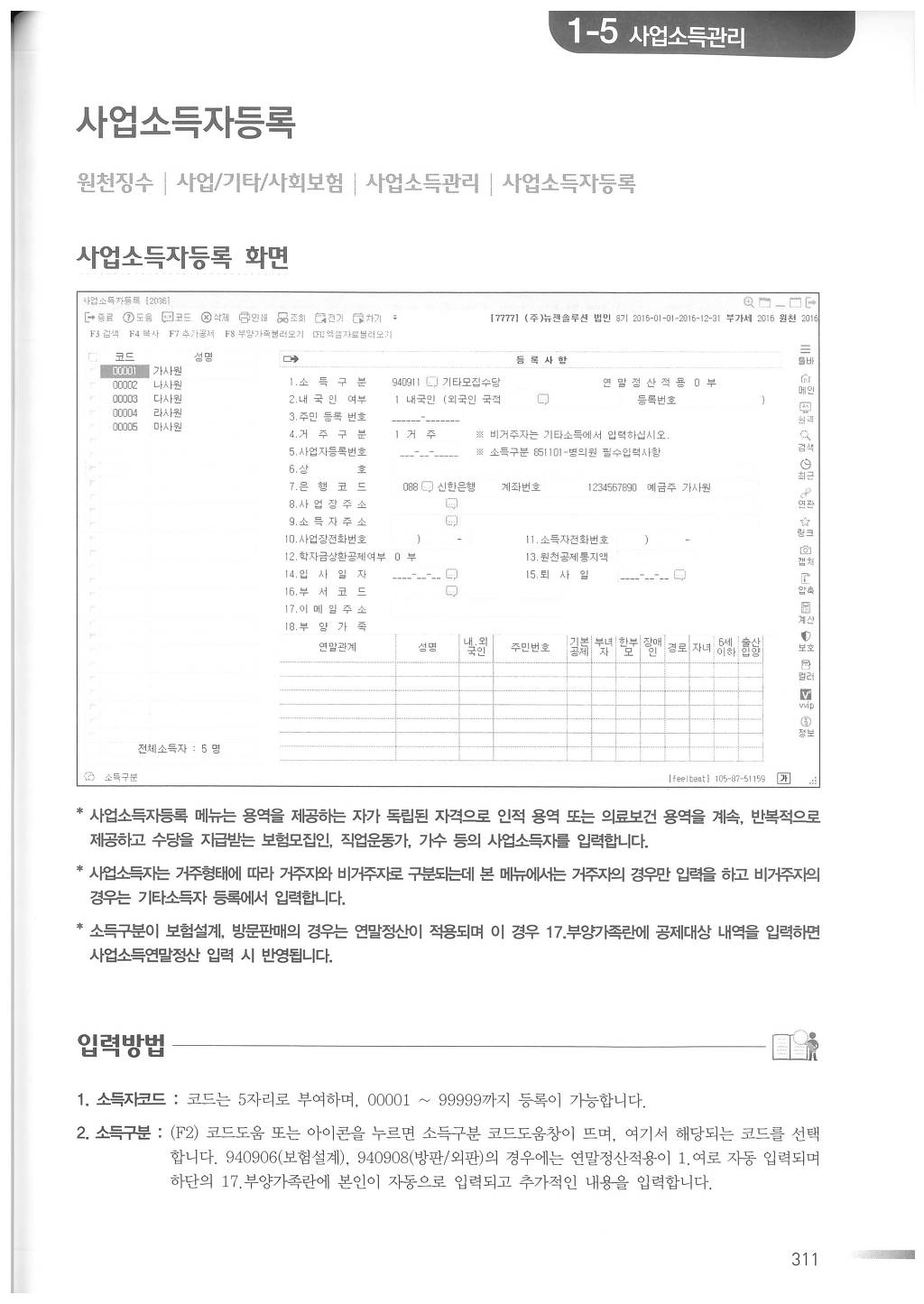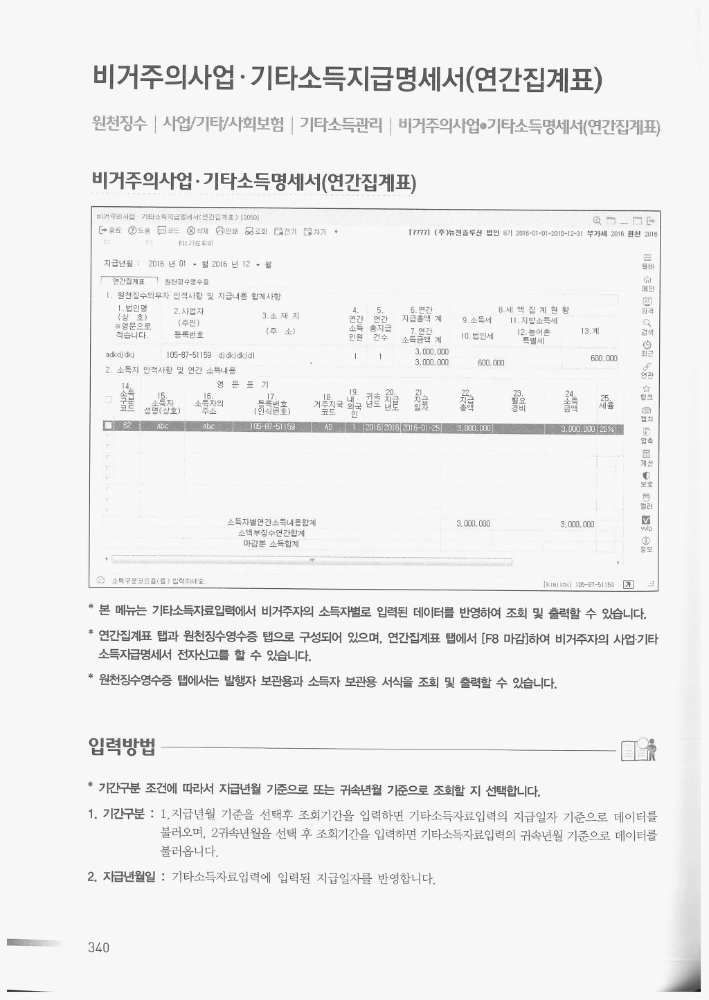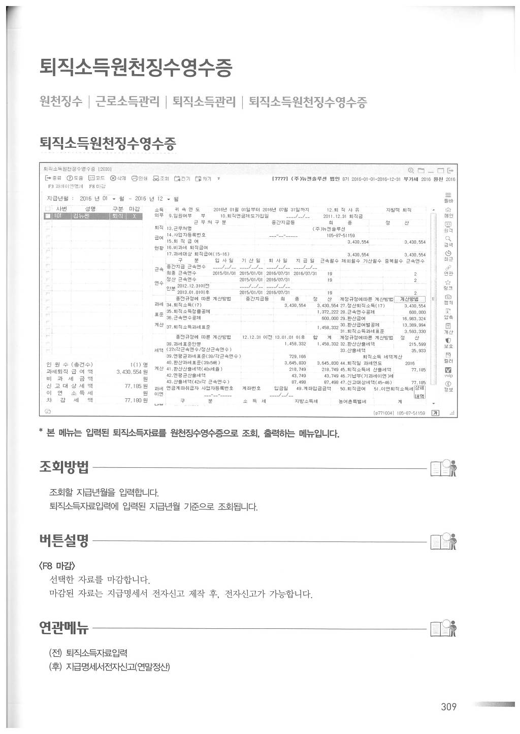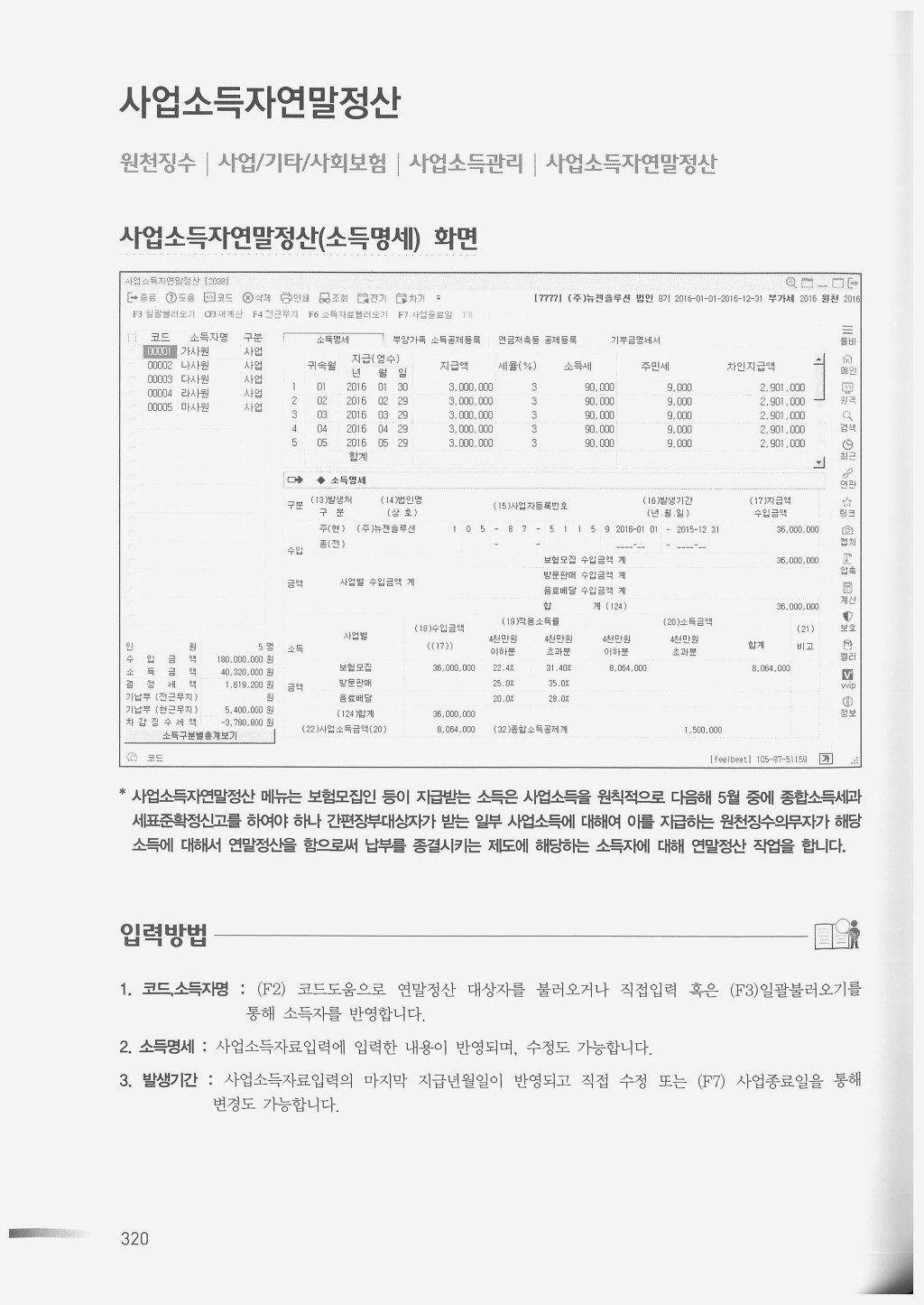 퇴직소득자료제출집계표 , 사업소득자등록 , 사업소득자료입력 , 사업소득조회 , 사업소득자료회계처리 , 사업소득자연말정산 ,