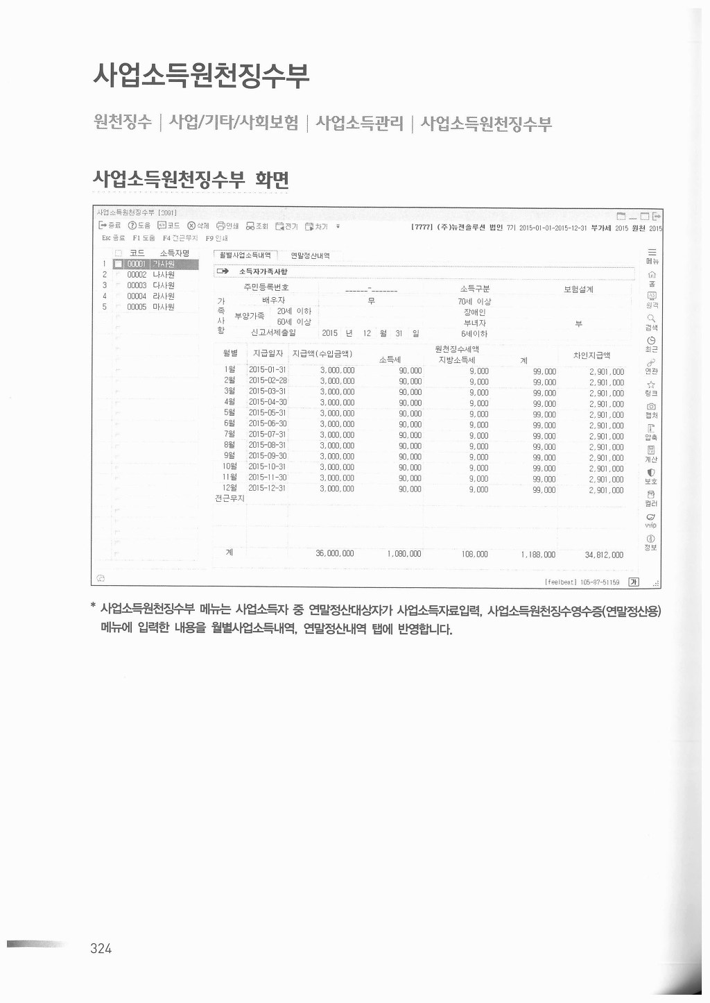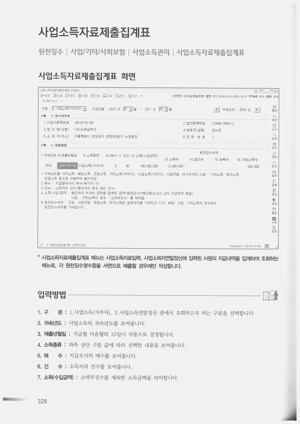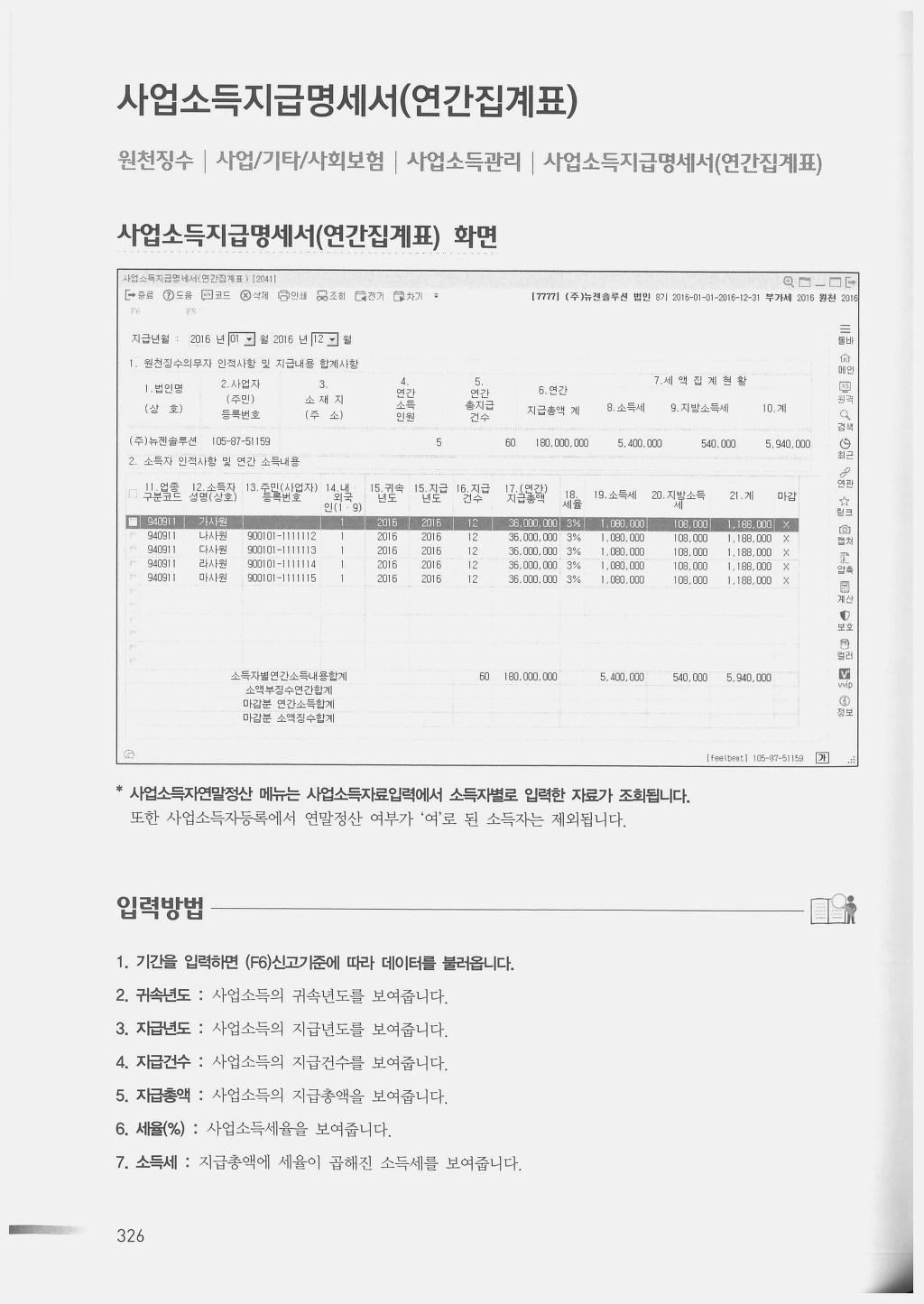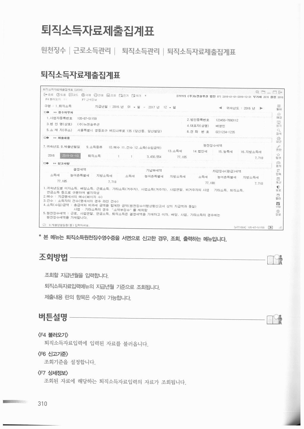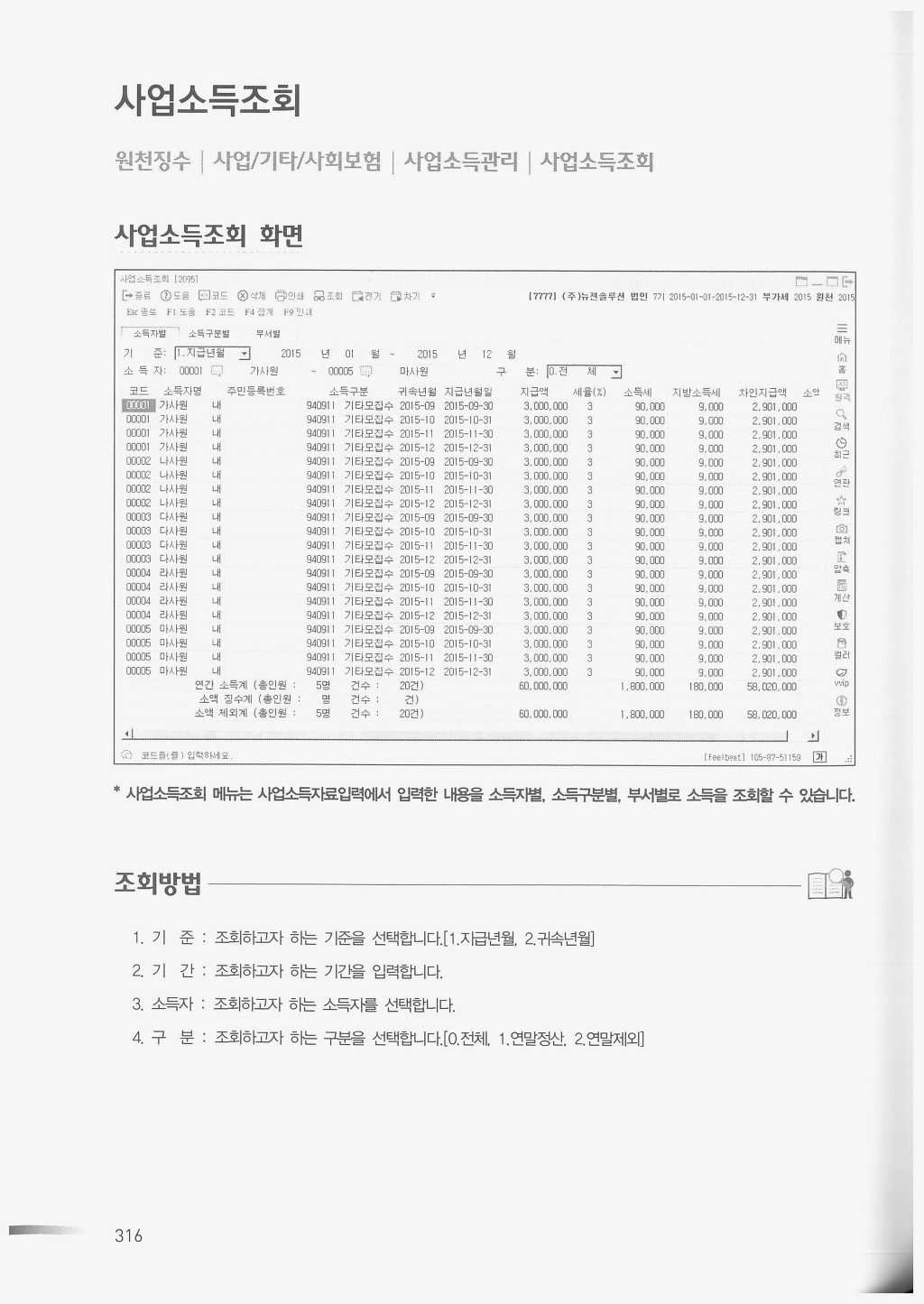 퇴직소득자료제출집계표 , 사업소득자등록 , 사업소득자료입력 , 사업소득조회 , 사업소득자료회계처리 , 사업소득자연말정산 ,