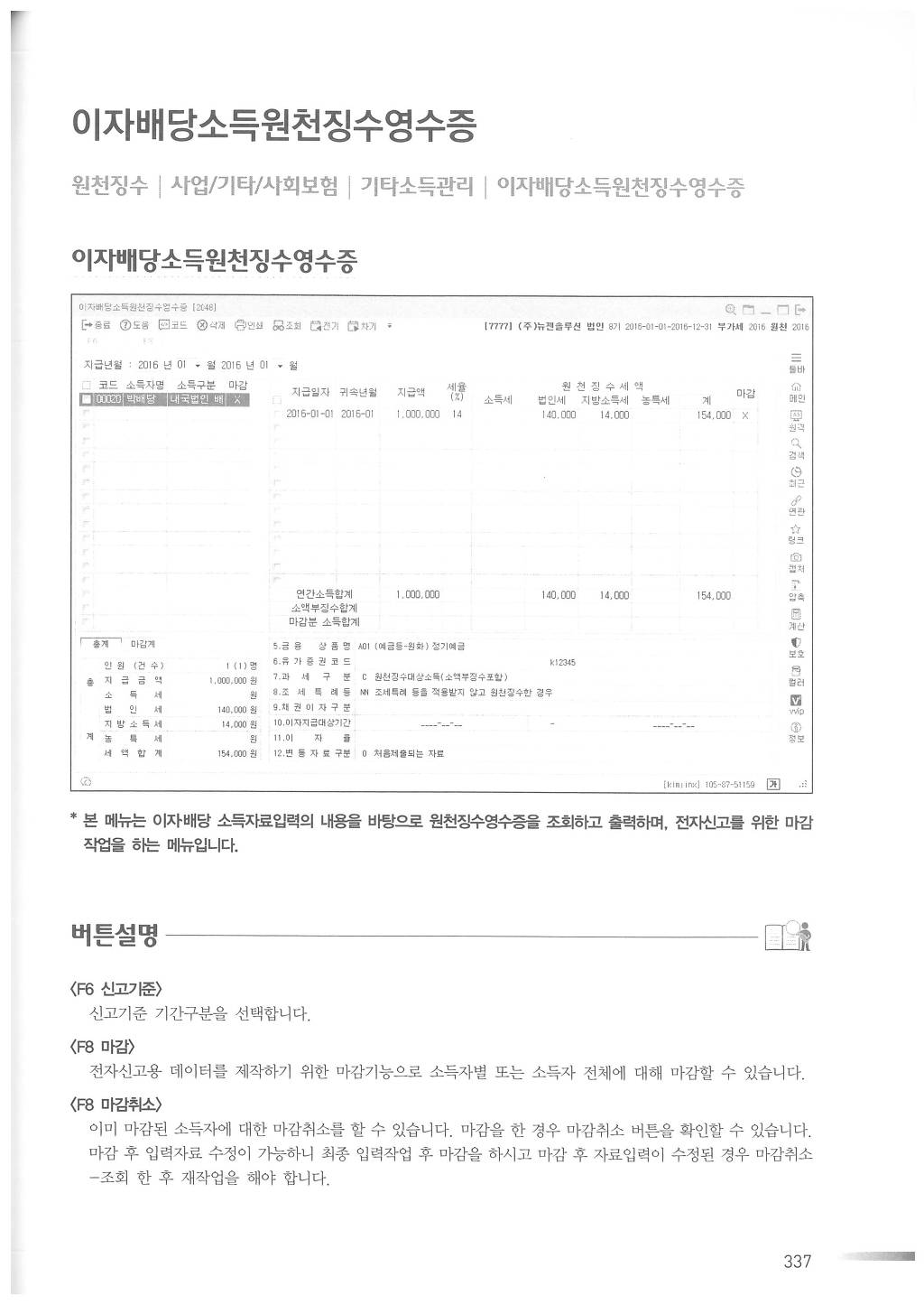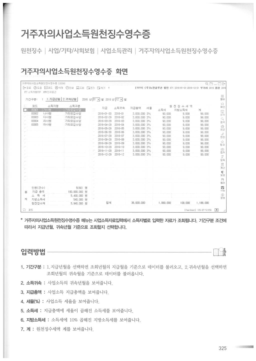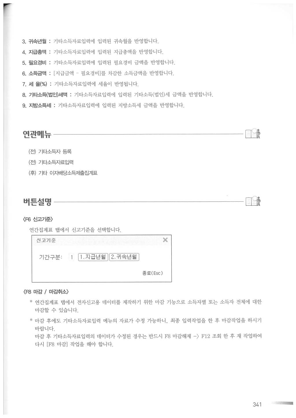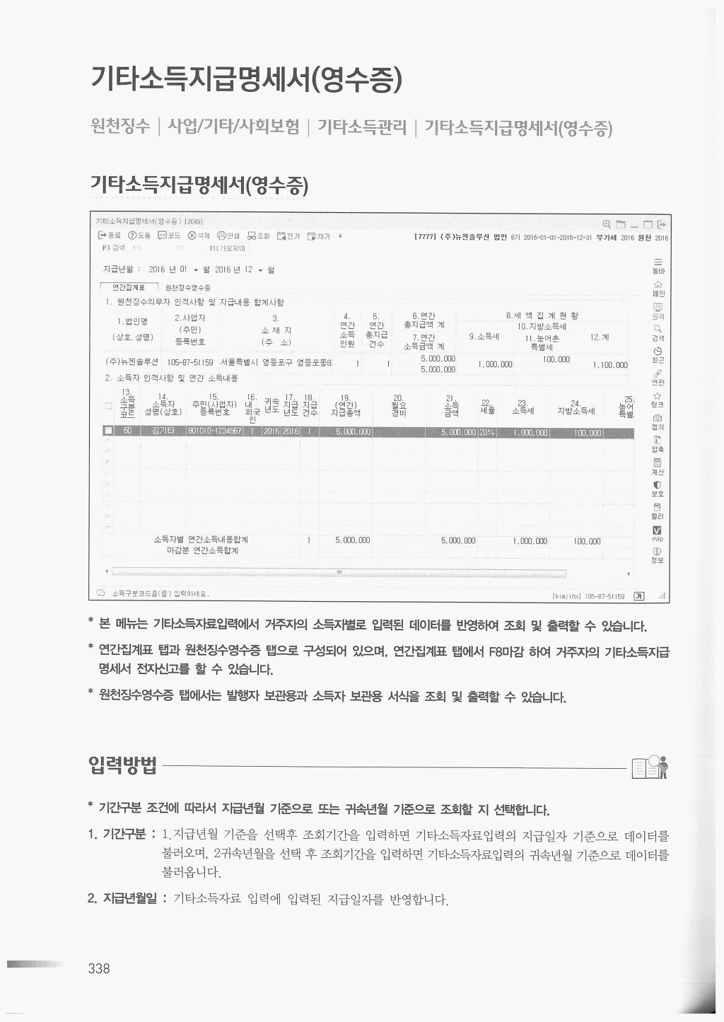 사업소득자료제출집계표 , 기타소득자료등록 , 기타소득자료입력 , 이자배당소득자료입력 , 이자배당소득원천징수영수증