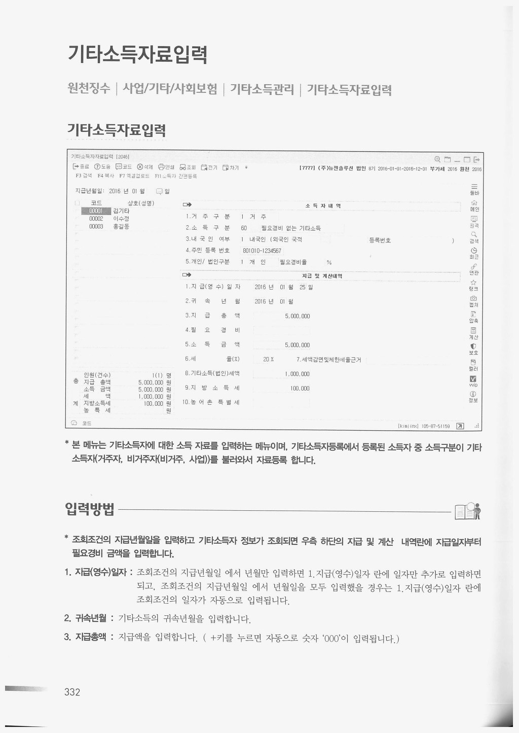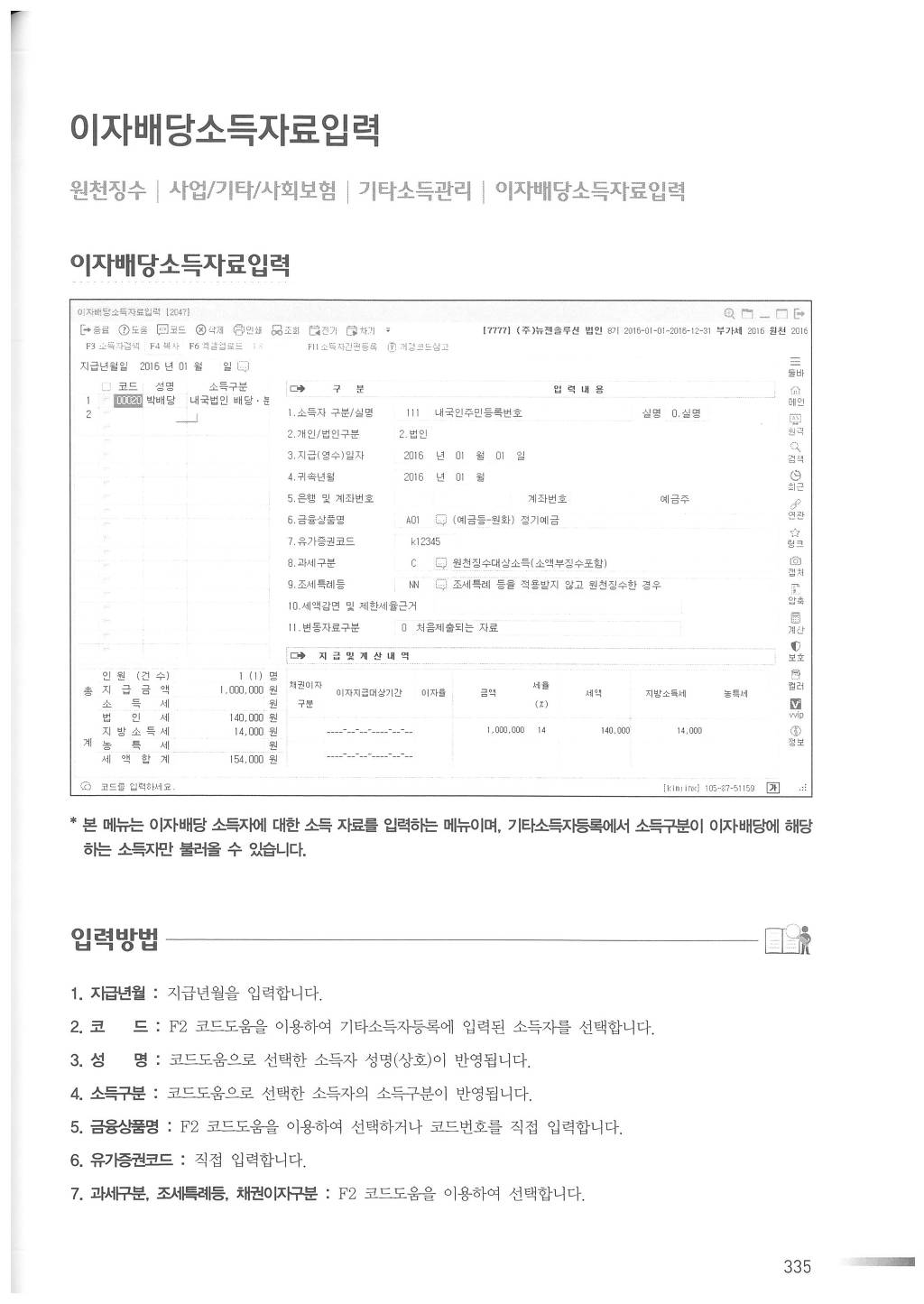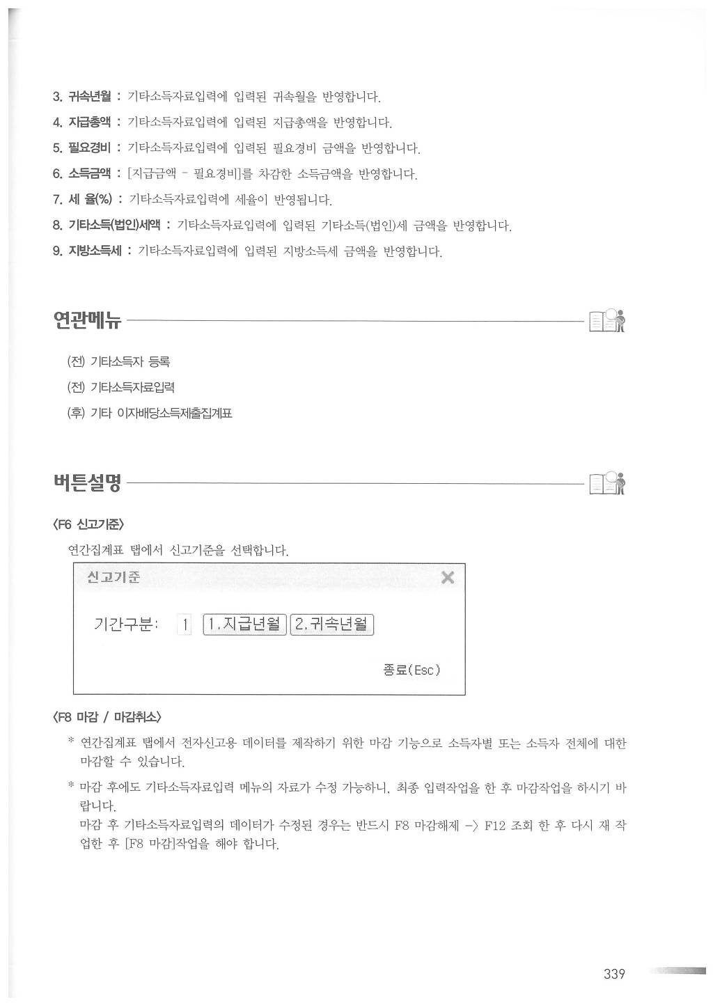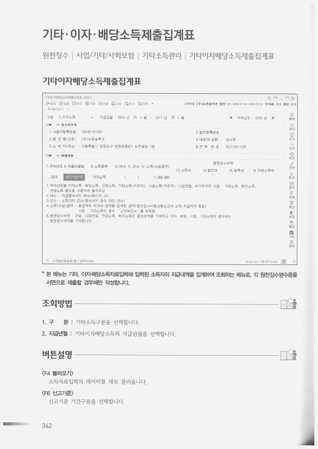 사업소득자료제출집계표 , 기타소득자료등록 , 기타소득자료입력 , 이자배당소득자료입력 , 이자배당소득원천징수영수증
