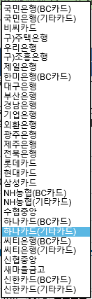 이때, 2017.07 ~ 2017.09 기간 동안의 카드 사용내역이 조회됩니다.