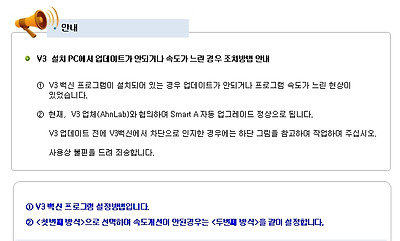 V3 설치 PC에서 업데이트가 안되거나 속도가 느린 경우 조치방법 안내 작성자이름이 모에요?|작성시간13.10.07|조회수150 목록 댓글 0 글자크기 작게가 글자크기 크게가 V3 설치 PC에서 업데이트가 안되거나 속도가 느린 경우 조치방법 안내 다음검색 현재 게시글 추가 기능 열기 북마크 공유하기 신고 센터로 신고 댓글 댓글 0 댓글쓰기 답글쓰기 댓글 리스트