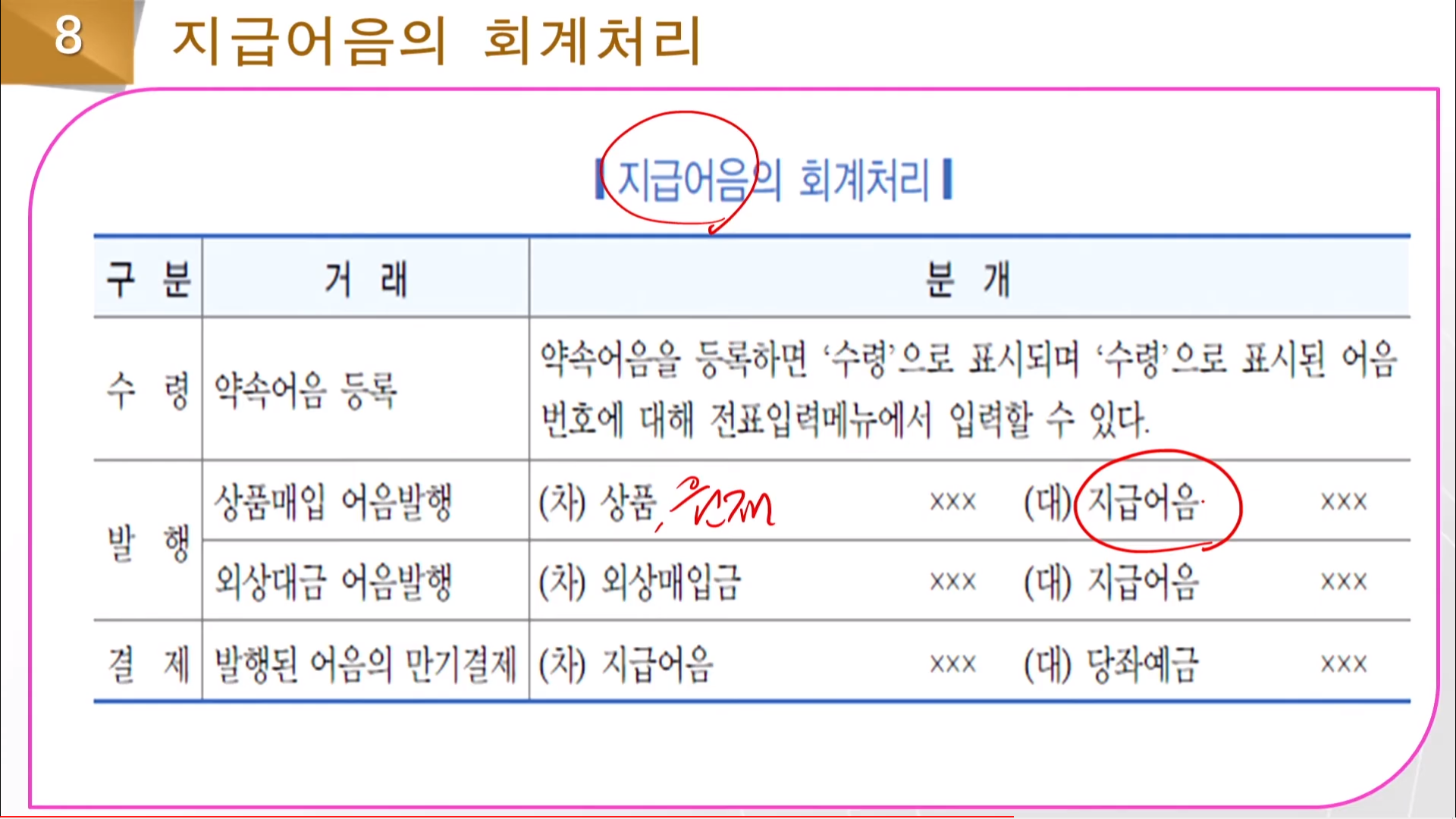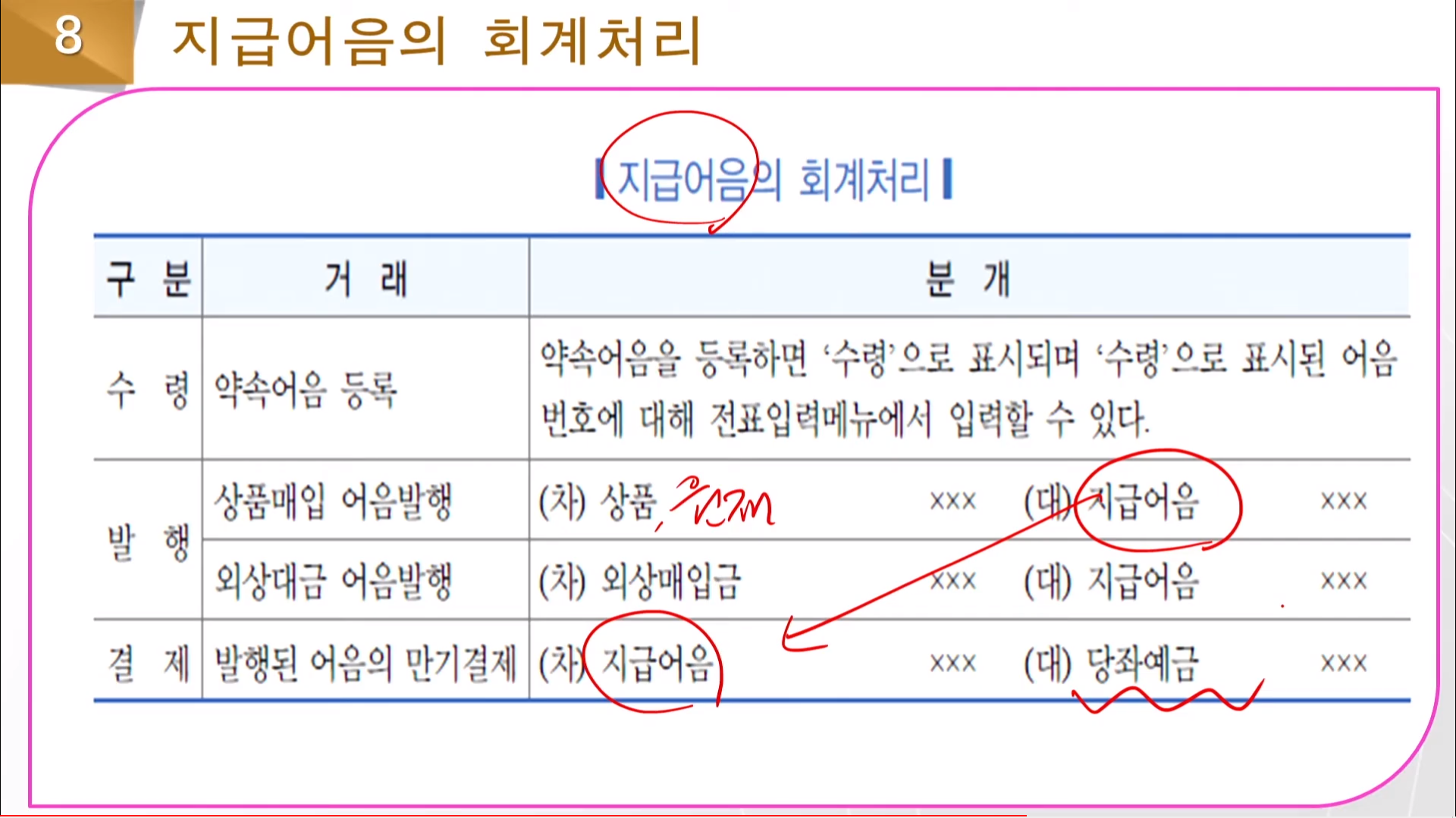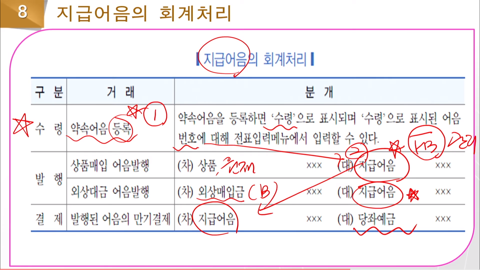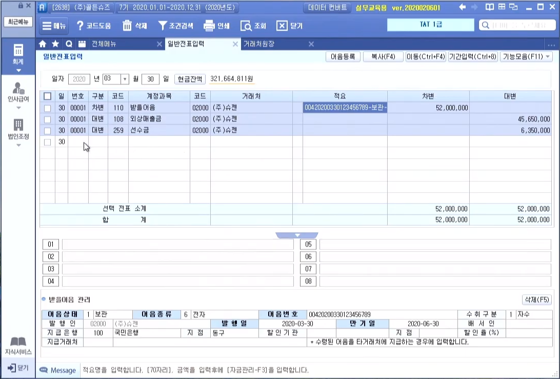 다 입력하면 적요에 자동으로 관련 된 어음번호 상태 만기일자가 나온다.