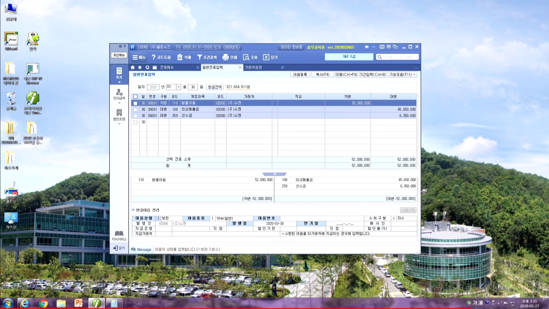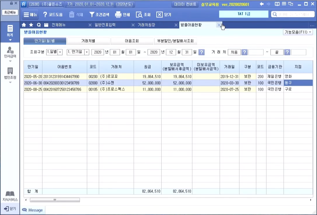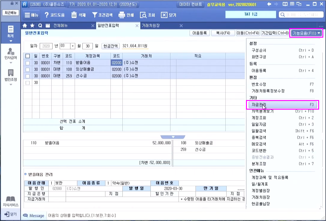 더존 New S Plus 교육 실무 프로그램 어음 관리 등록 삭제하는 방법