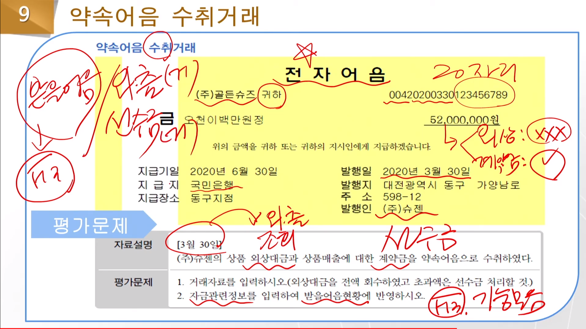 어음의 종류 [1:약속(일반),2:약속(상장),3:당좌,4:가계,5:기타,6:전자]