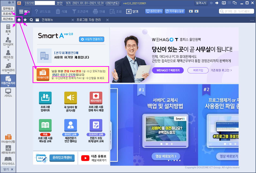 더존 솔루션 고객님께 무료로 제공해드리던 스마트 UMS 무료혜택이 종료 되어 부여해 드린 050 팩스번호는 유상으로 전환되었습니다.