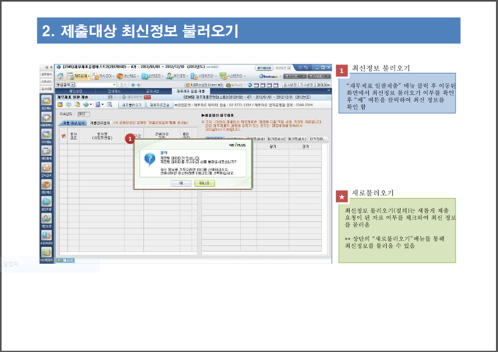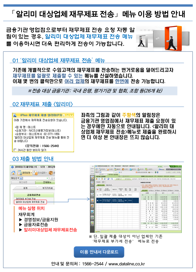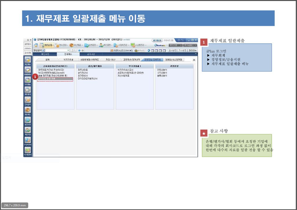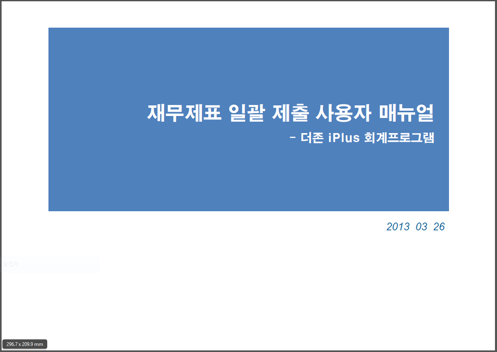 「알리미 대상업체 재무제표 전송」 메뉴 이용 방법 안내 작성자수아&갈렙|작성시간14.04.23|조회수1,264 목록 댓글 0 글자크기 작게가 글자크기 크게가 재무제표일괄제출사용자매뉴얼 - 더존iplus회계프로그램.pdf 윈도우8 전송시 공인인증서가 보이지 않으면 C:\Program Files (x86)\NPKI에 공인인증서를 복사또는 옮겨 놓으시면 보이네염. 첨부파일첨부된 파일이 10개 있습니다. png 파일 20130513_ipuls_notice_p3.png 다운로드 pdf 파일 재무제표일괄제출사용자매뉴얼 - 더존iplus회계프로그램.pdf 다운로드 png 파일 알리미-1.png 다운로드 png 파일 알리미-2.png 다운로드 png 파일 알리미-3.png 다운로드 png 파일 알리미-4.png 다운로드 png 파일 알리미-5.png 다운로드 png 파일 알리미-6.png 다운로드 png 파일 알리미-7.png 다운로드 png 파일 알리미-8.png 다운로드 다음검색 현재 게시글 추가 기능 열기 북마크 공유하기 신고 센터로 신고 댓글 댓글 0 댓글쓰기 답글쓰기 댓글 리스트
