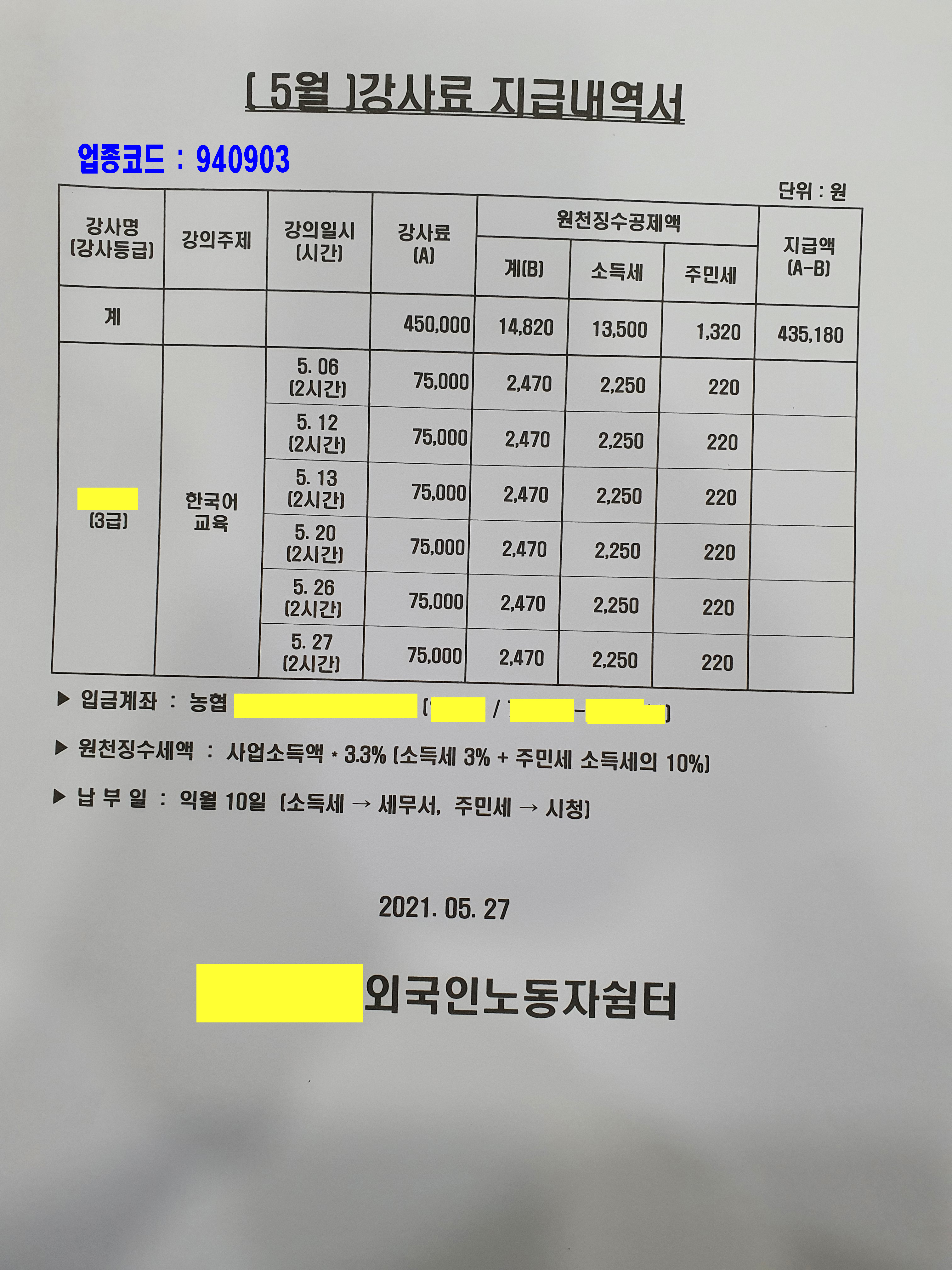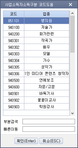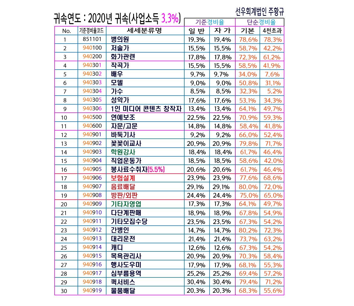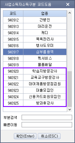 자유인적용역(940***) 사업소득 기준경비율851101,940100~940919,940920(학습지방문강사)~940925(방과후강사)