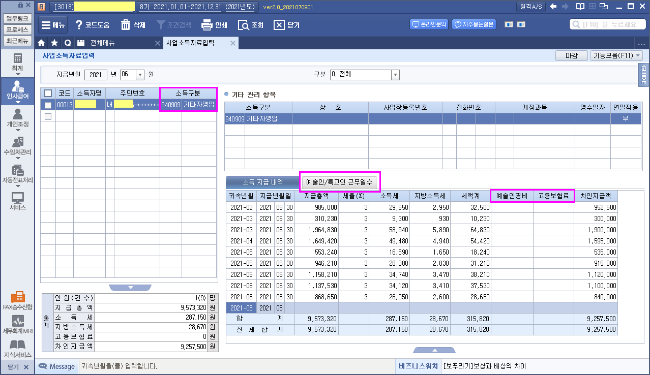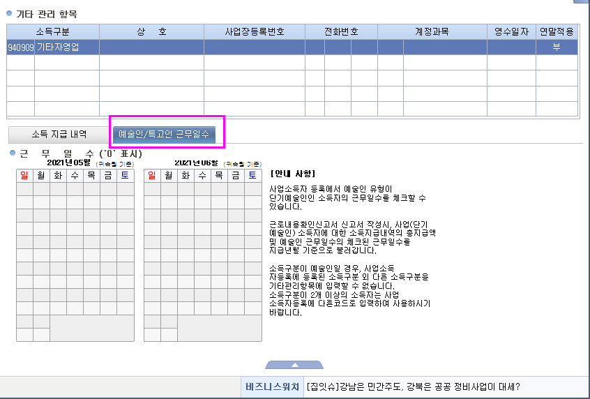 더존 - 사업소득 입력 예술인 / 특고인 근무일수 고용보험 산재보험 작성자주황규|작성시간21.07.10|조회수938 목록 댓글 0 글자크기 작게가 글자크기 크게가 3 - 사업소득대장 (계속적 반복적 주업 수익적) - 주황규팀장 2020-08-07.xlsx2.54MB 첨부파일첨부된 파일이 4개 있습니다. jpg 파일 주황규.jpg 다운로드 png 파일 사업소득.png 다운로드 png 파일 예술인 특고인.png 다운로드 xlsx 파일 3 - 사업소득대장 (계속적 반복적 주업 수익적) - 주황규팀장 2020-08-07.xlsx 다운로드 다음검색 현재 게시글 추가 기능 열기 북마크 공유하기 신고 센터로 신고 댓글 댓글 0 댓글쓰기 답글쓰기 댓글 리스트