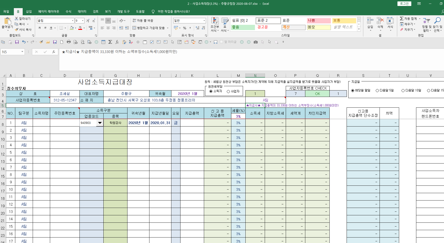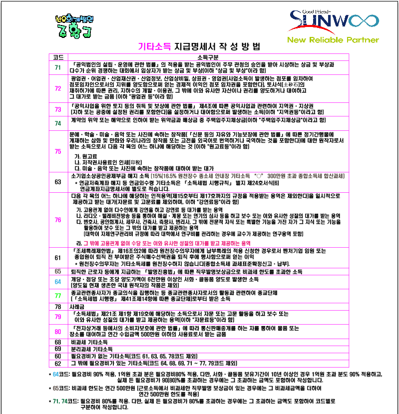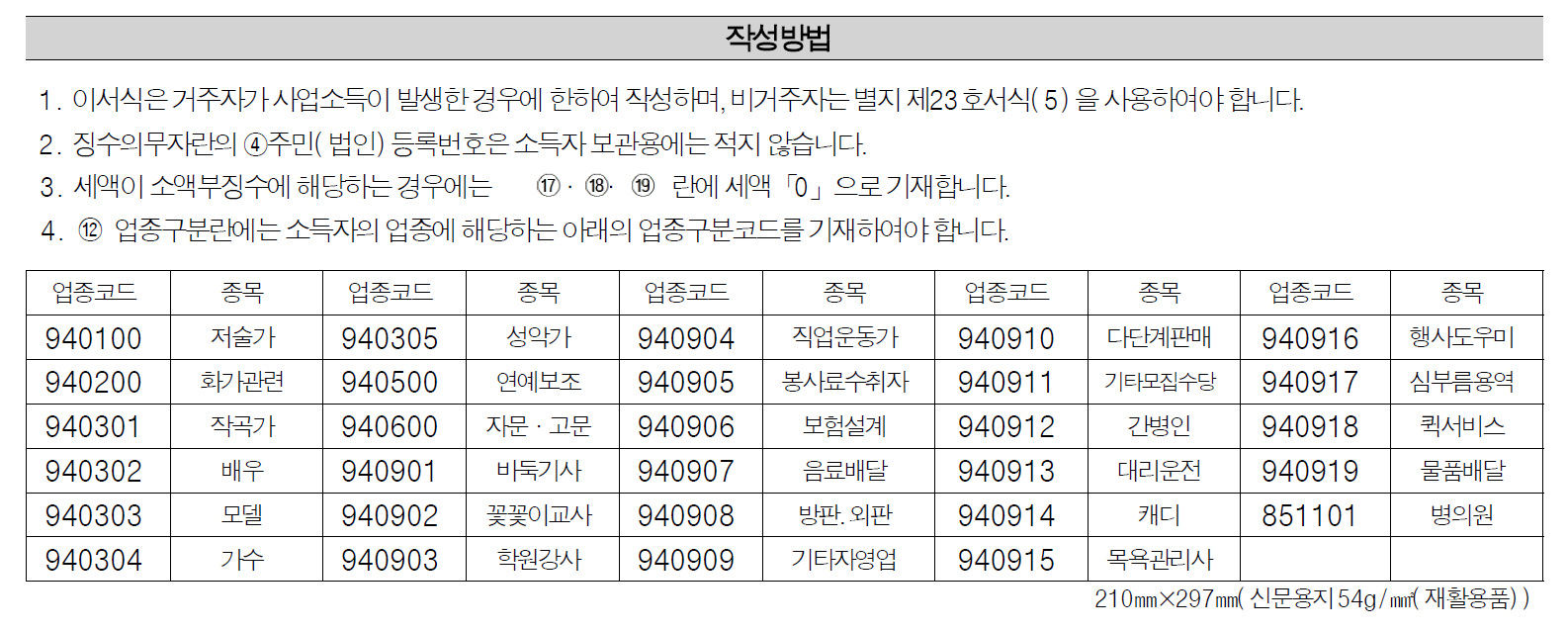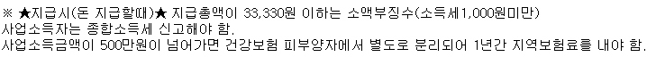 하단은 사업소득 (지급액의 3.3% 원천징수)