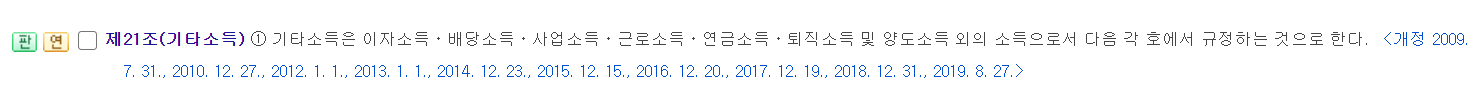 ① 기타소득은 이자소득ㆍ배당소득ㆍ사업소득ㆍ근로소득ㆍ연금소득ㆍ퇴직소득ㆍ금융투자소득 및 양도소득 외의 소득으로서 다음 각 호에서 규정하는 것으로 한다.