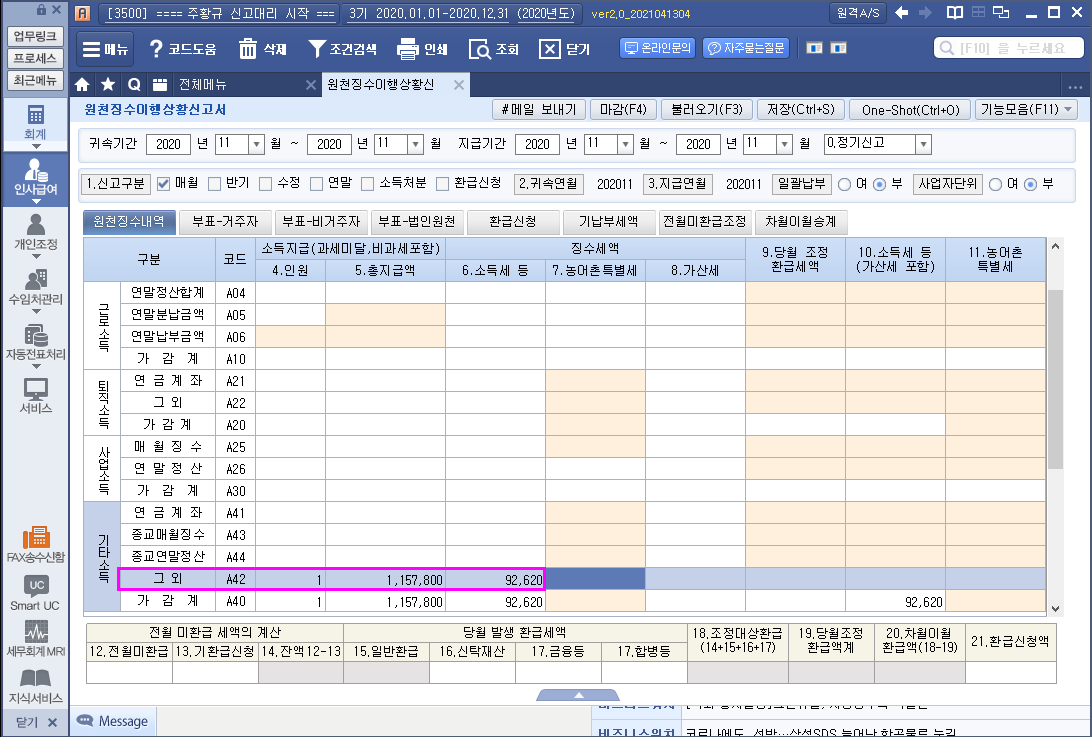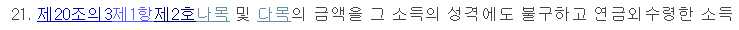 21. 제20조의3제1항제2호나목 및 다목의 금액을 그 소득의 성격에도 불구하고 연금외수령한 소득