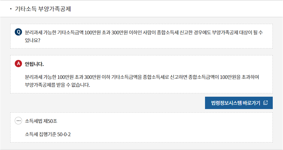 | ① 기타소득은 이자소득ㆍ배당소득ㆍ사업소득ㆍ근로소득ㆍ연금소득ㆍ퇴직소득·금융투자소득 및 양도소득 외의 소득으로서 다음 각 호에서 규정하는 것으로 한다.(2020.12.29. 개정) 1. 공적연금 관련법에 따라 받는 각종 연금(이하 “공적연금소득”이라 한다)(2013.01.01 개정) |