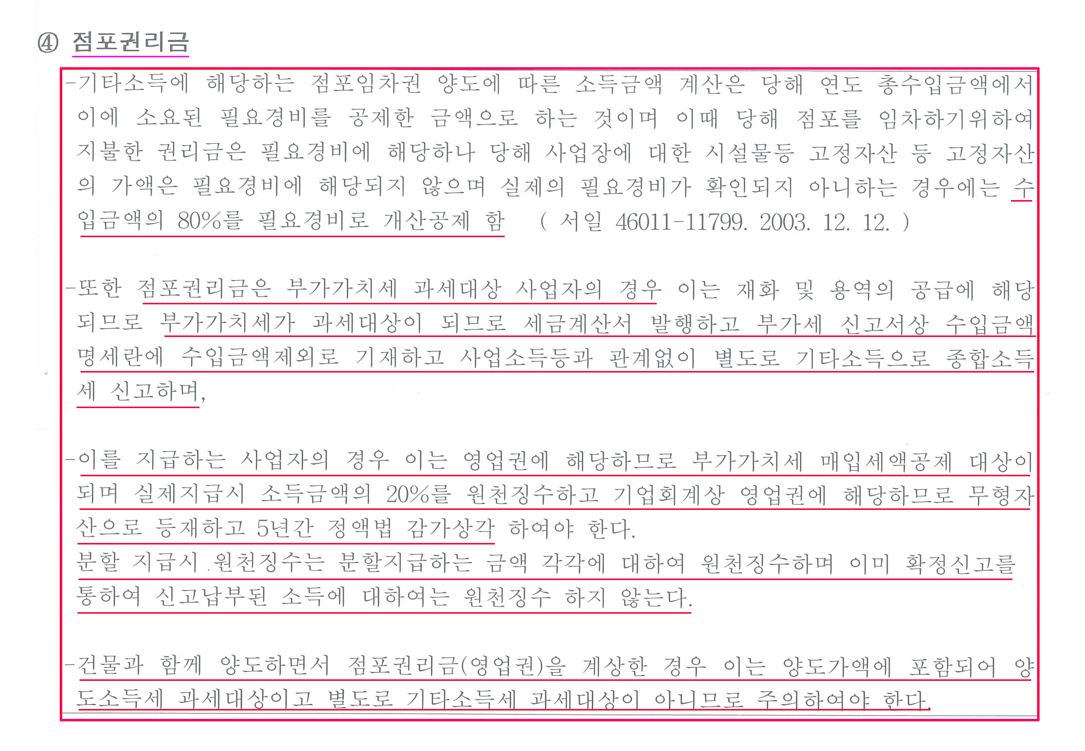 ④ 법 제21조[기타소득] 제1항 제7호에서 “대통령령으로 정하는 점포 임차권”이란 거주자가 사업소득(기획재정부령으로 정하는 사업소득을 제외한다)이 발생하는 점포를 임차하여 점포 임차인으로서의 지위를 양도함으로써 얻는 경제적 이익(점포임차권과 함께 양도하는 다른 영업권을 포함한다)을 말한다.(2010.02.18 개정)