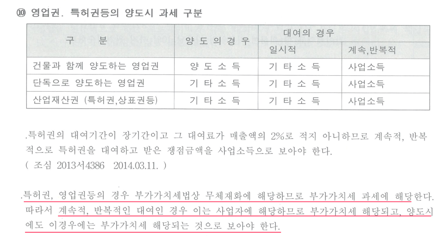 7. 광업권ㆍ어업권ㆍ양식업권ㆍ산업재산권ㆍ산업정보, 산업상 비밀, 상표권ㆍ영업권(대통령령으로 정하는 점포 임차권을 포함한다), 토사석(土砂石)의 채취허가에 따른 권리, 지하수의 개발ㆍ이용권, 그 밖에 이와 유사한 자산이나 권리를 양도하거나 대여하고 그 대가로 받는 금품(2019.08.27. 개정)