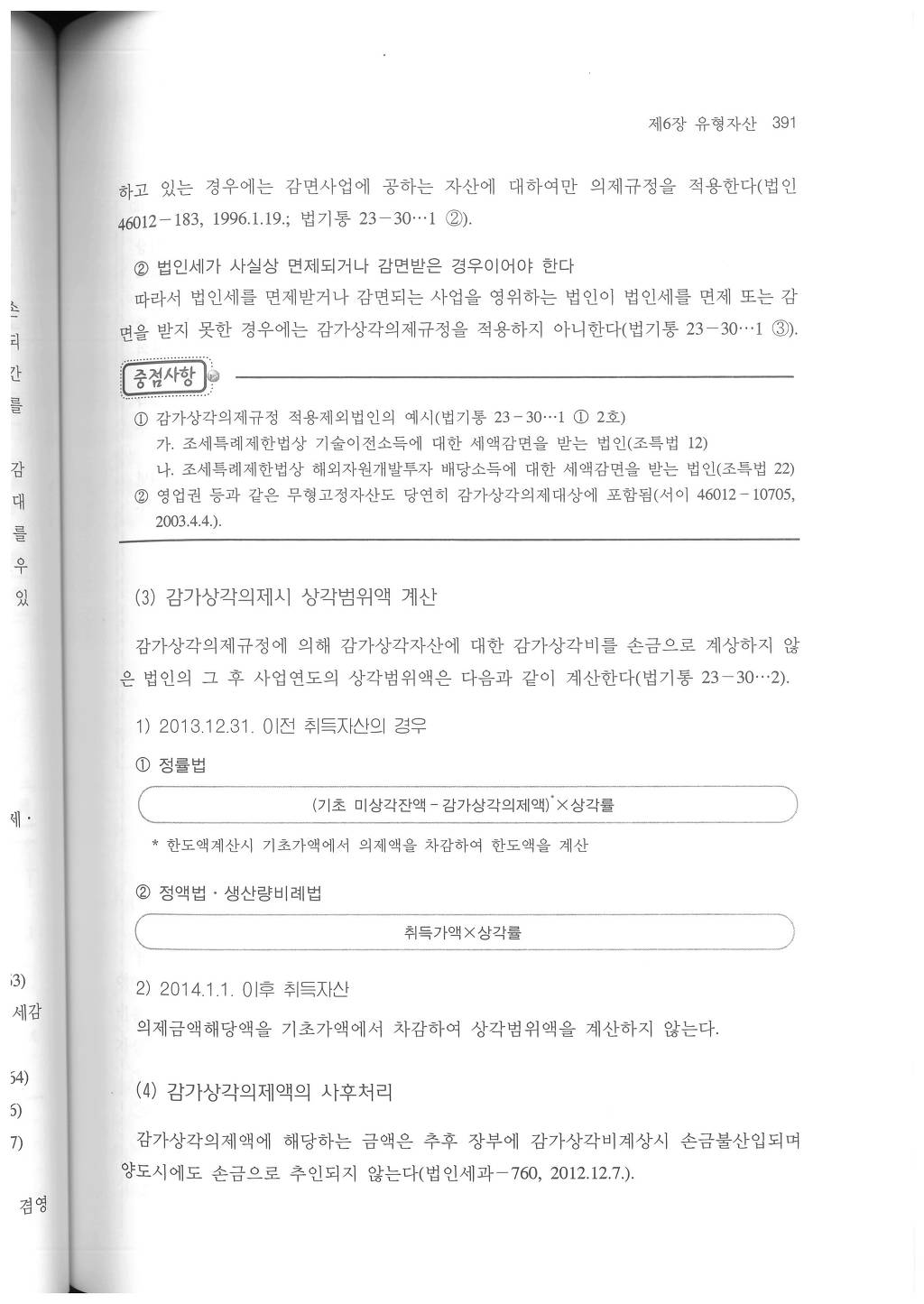 | 각 사업연도의 소득에 대하여 법인세가 면제되거나 감면되는 사업을 경영하는 법인으로서 법인세를 면제받거나 감면받은 경우에는 개별 자산에 대한 감가상각비가 법 제23조 제1항 본문에 따른 상각범위액이 되도록 감가상각비를 손금에 산입하여야 한다. 다만, 국제회계기준을 적용하는 법인은 법 제23조 제2항에 따라 개별 자산에 대한 감가상각비를 추가로 손금에 산입할 수 있다.(2014.02.21 개정)
