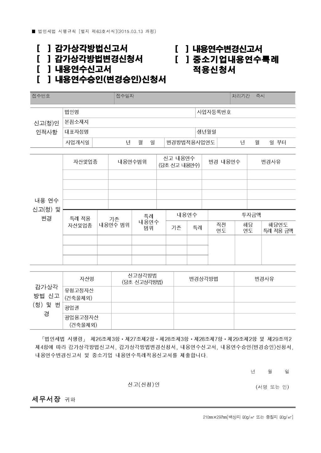 첨부파일 법인세법 시행규칙 [별지 제63호서식](2015.03.13 개정) 감가상각방법신고서.hwp