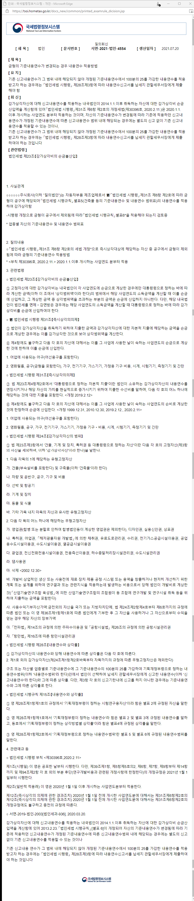 금형의 기준내용연수 2020.1.1.이후 변경되는 경우 내용연수 적용방법 서면-2021-법인-4554 2021.07.20