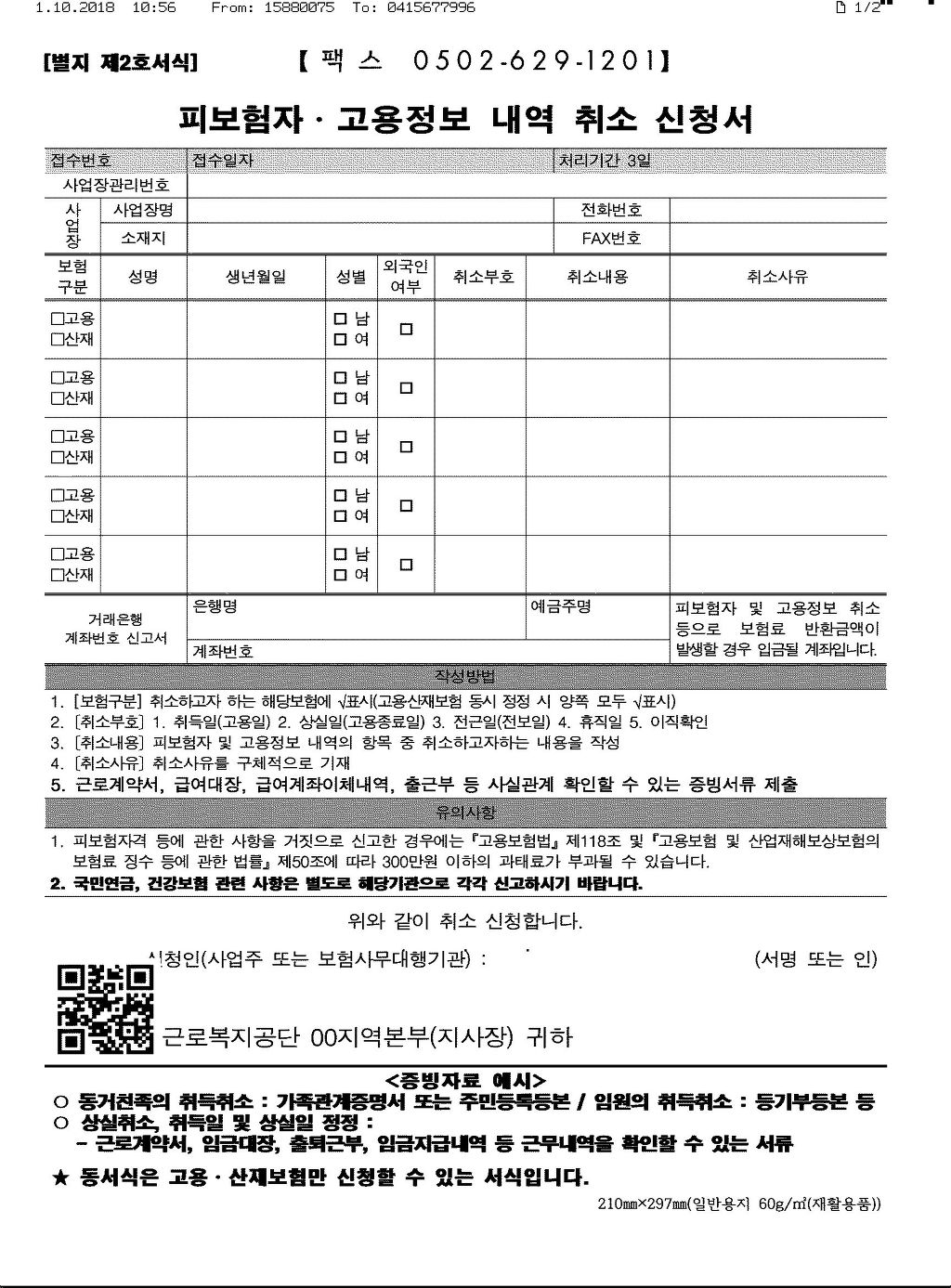 [별지 제2호서식] 피보험자 고용정보 내역 취소 신청서 , 사유서 및 과태료 처분 등에 대한 관련 법조항안내 작성자Jayden Ju.|작성시간18.12.12|조회수1,339 목록 댓글 0 글자크기 작게가 글자크기 크게가 다음검색 현재 게시글 추가 기능 열기 북마크 공유하기 신고 센터로 신고 댓글 댓글 0 댓글쓰기 답글쓰기 댓글 리스트