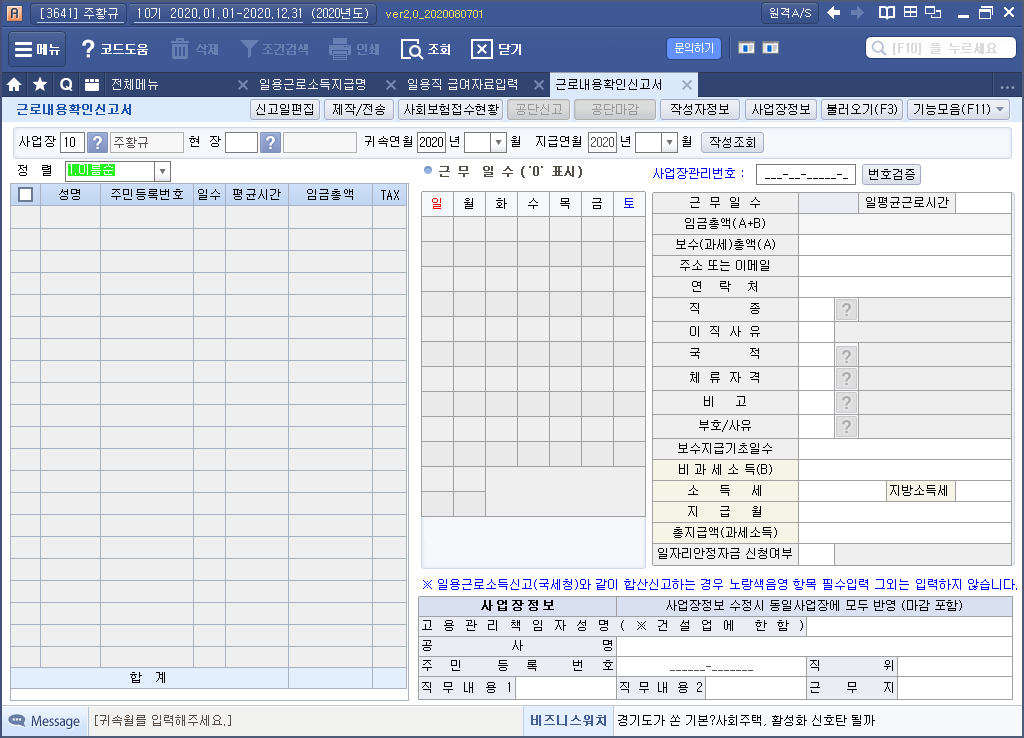 ※ 고용신고를 하지 않은 경우에는 연간 보수총액만 신고할 수 있음