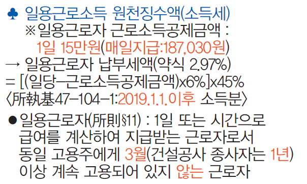 * 일용근로자의 근로소득공제 개정현황:12002년(6만원), 2003년(8만원), 2009년(10만원) 2019년(15만원)