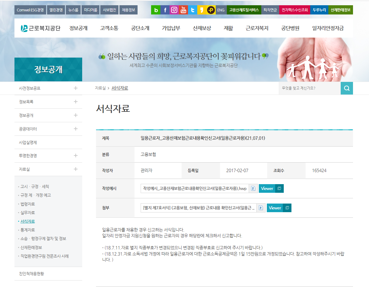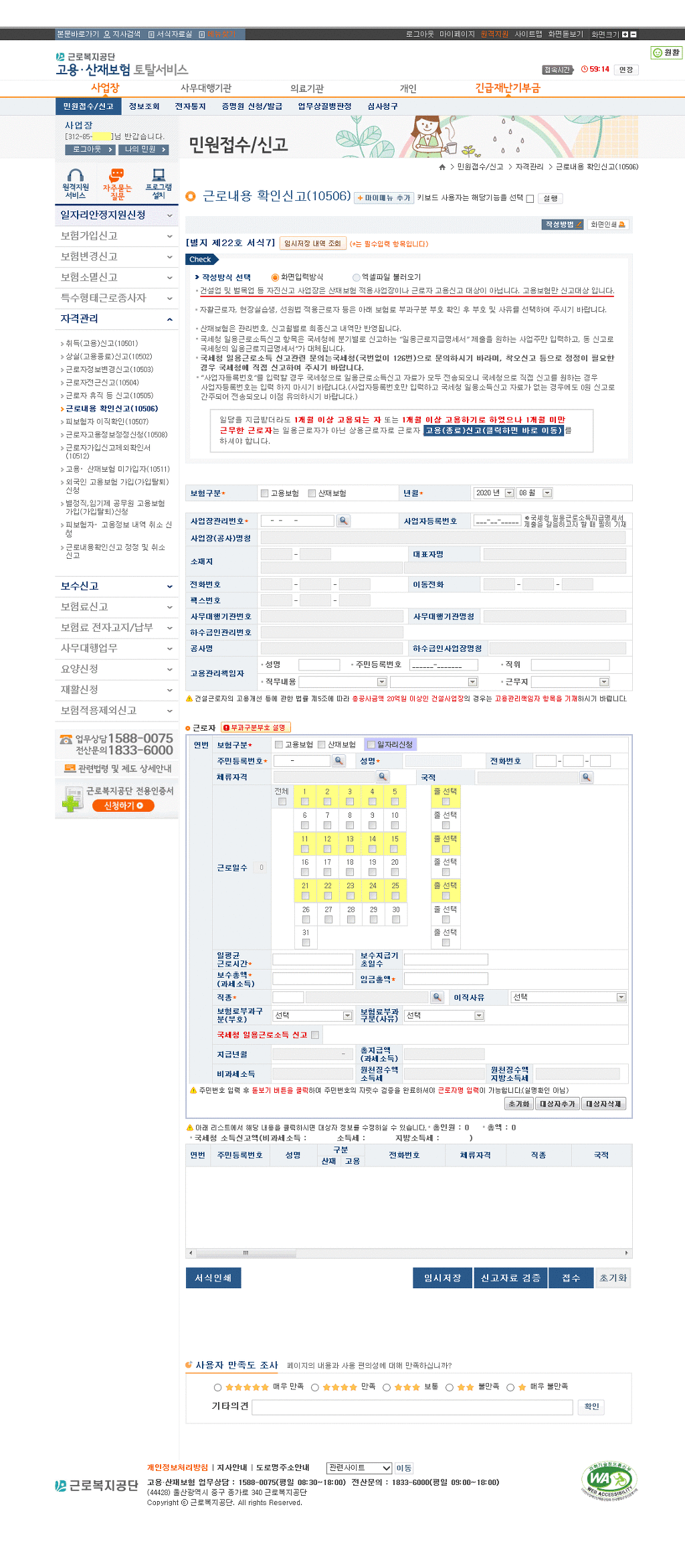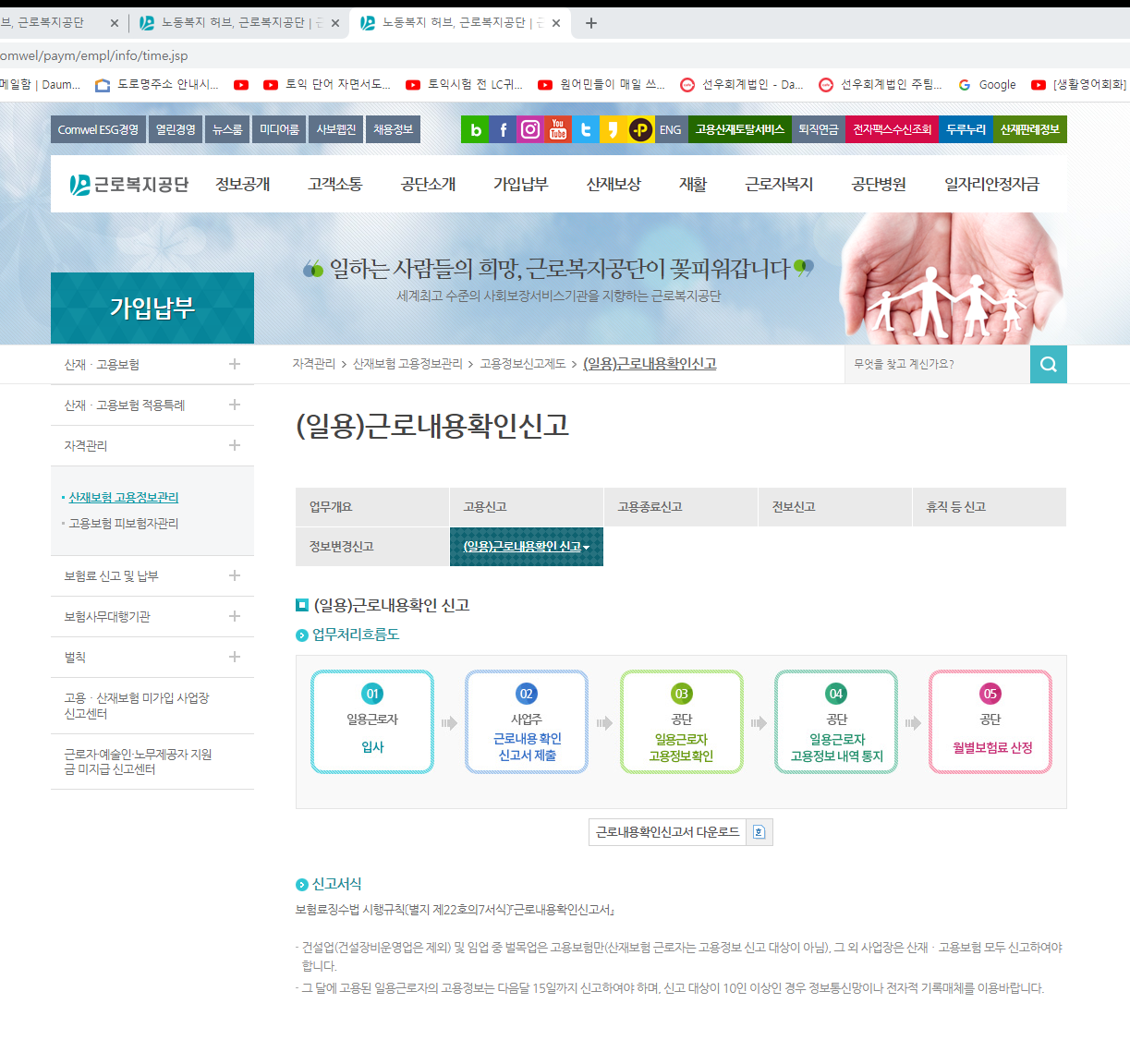 일용근로자고용산재보험근로내용확인신고서(일용근로자용)(21.07.01) 귀속월의 다음달 15일까지 신고/10인이상 고용토탈서비스 전자신고