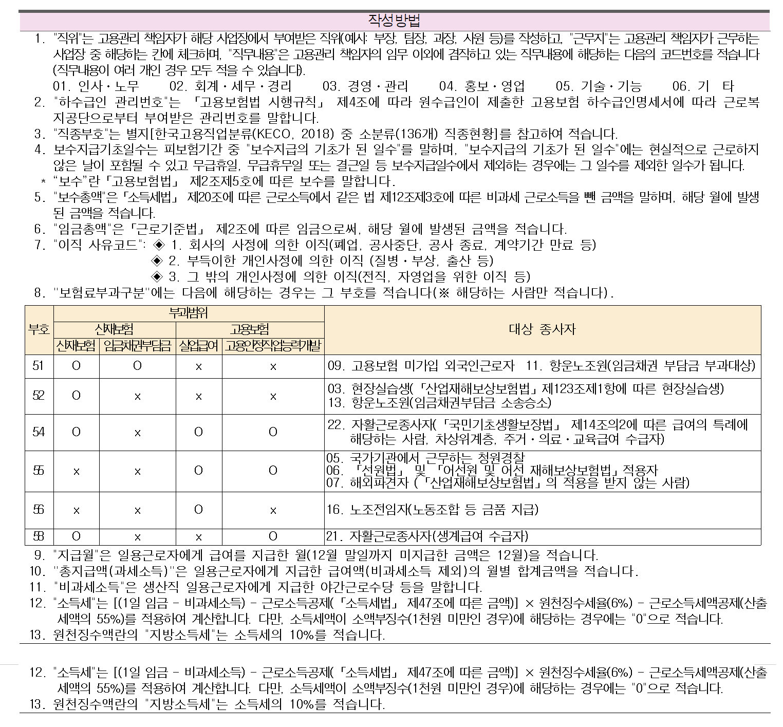 2. 건설업(건설장비운영업은 제외합니다)과 임업 중 벌목업 사업장은 고용보험 근로자 근로내용 확인신고서만 작성하고,
