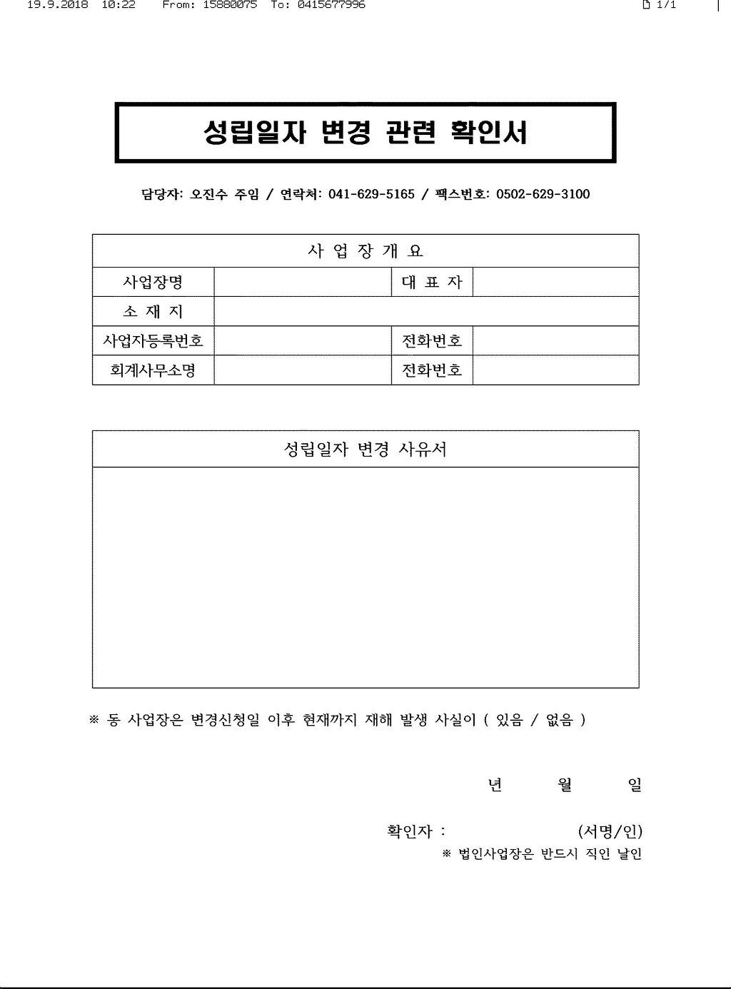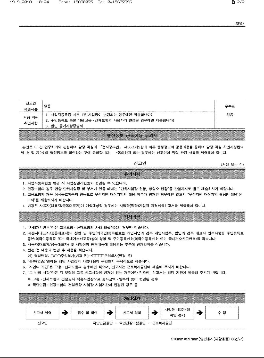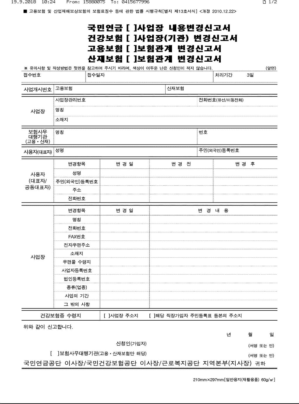 4대보험 사업장 내용변경신고서 작성자Jayden Ju.|작성시간18.12.12|조회수1,074 목록 댓글 0 글자크기 작게가 글자크기 크게가 다음검색 현재 게시글 추가 기능 열기 북마크 공유하기 신고 센터로 신고 댓글 댓글 0 댓글쓰기 답글쓰기 댓글 리스트