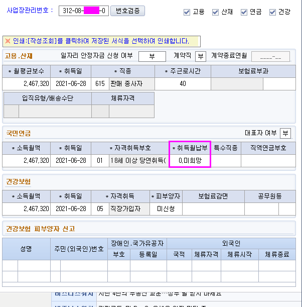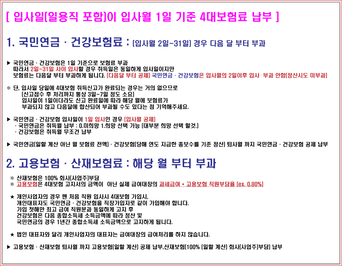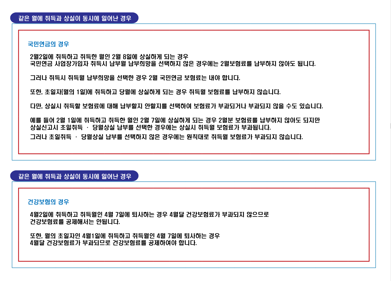 ・ 보험료의 납부기간 : 취득한 날이 속하는 달의 다음 달부터 상실한 날의 전날이 속하는 달까지 납부하게 됩니다.