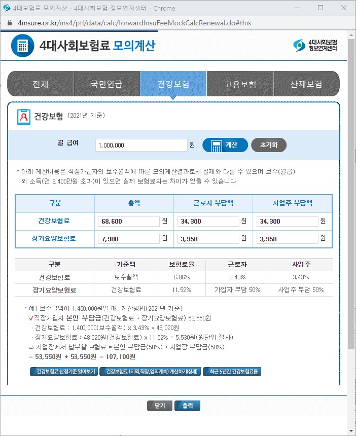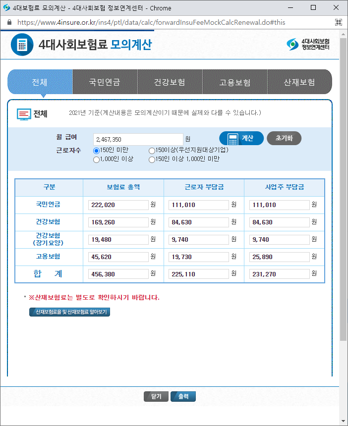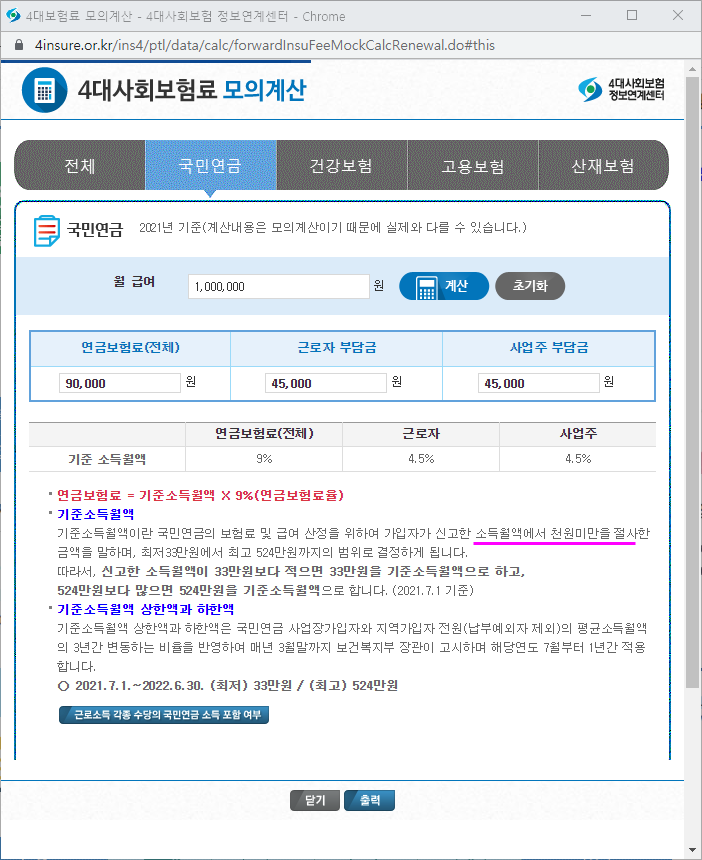 1. 각 사업장의 소득월액의 합이 최고 기준소득월액(468만월)을 초과하지 않는 경우