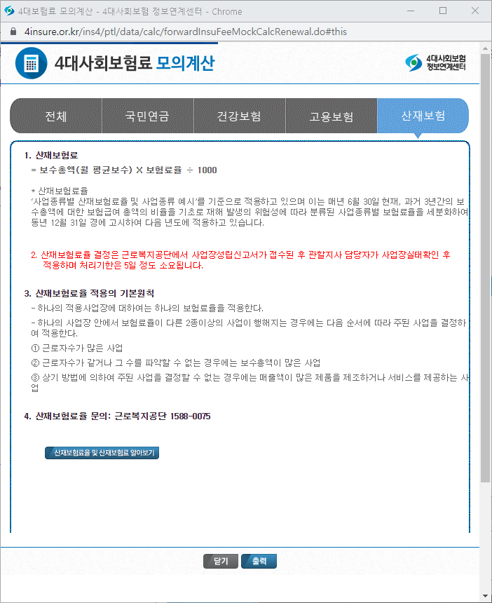 이 때 각 사업장마다 납부하여야 하는 보험료는 아래 기준에 의하여 공단이 결정합니다.