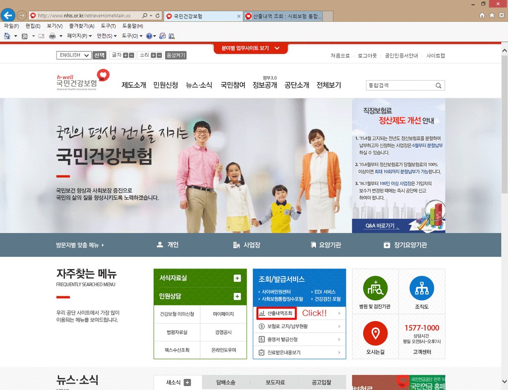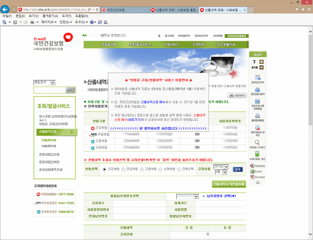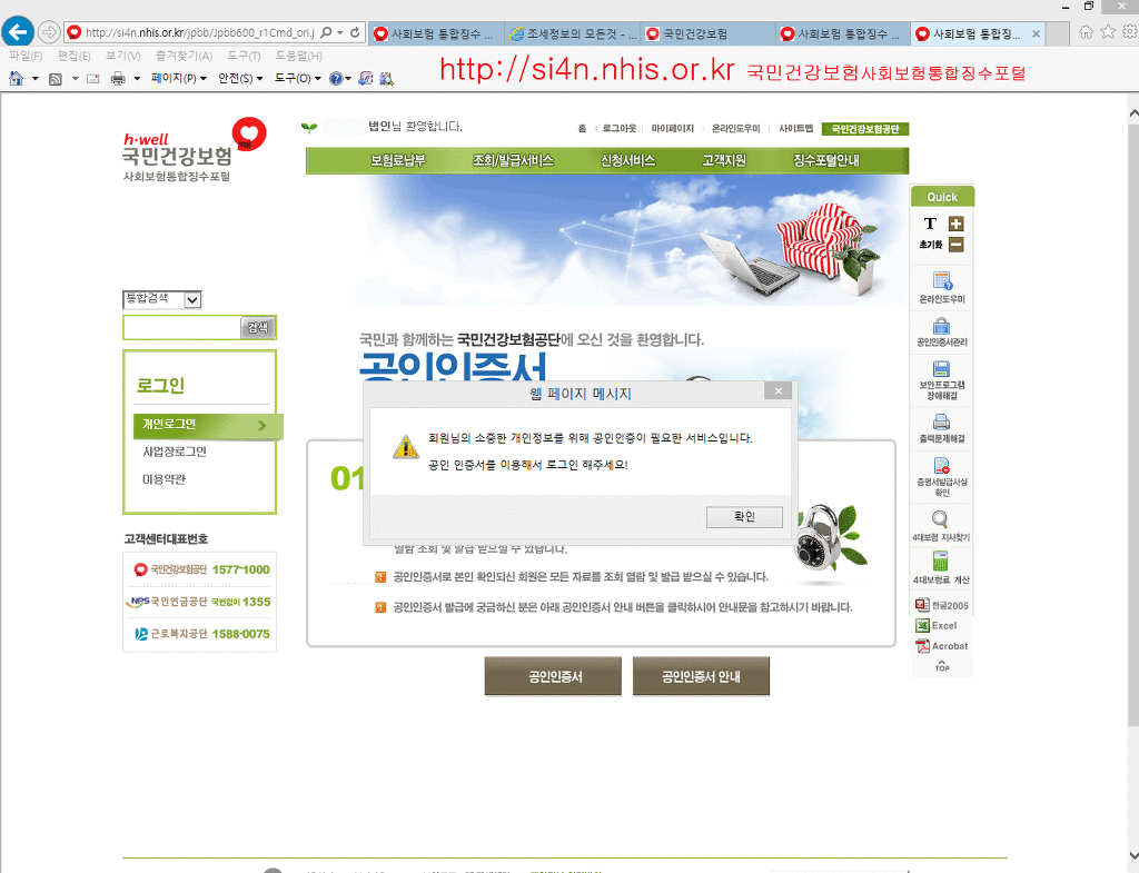 사회보험통합징수포털 http://si4n.nhis.or.kr/