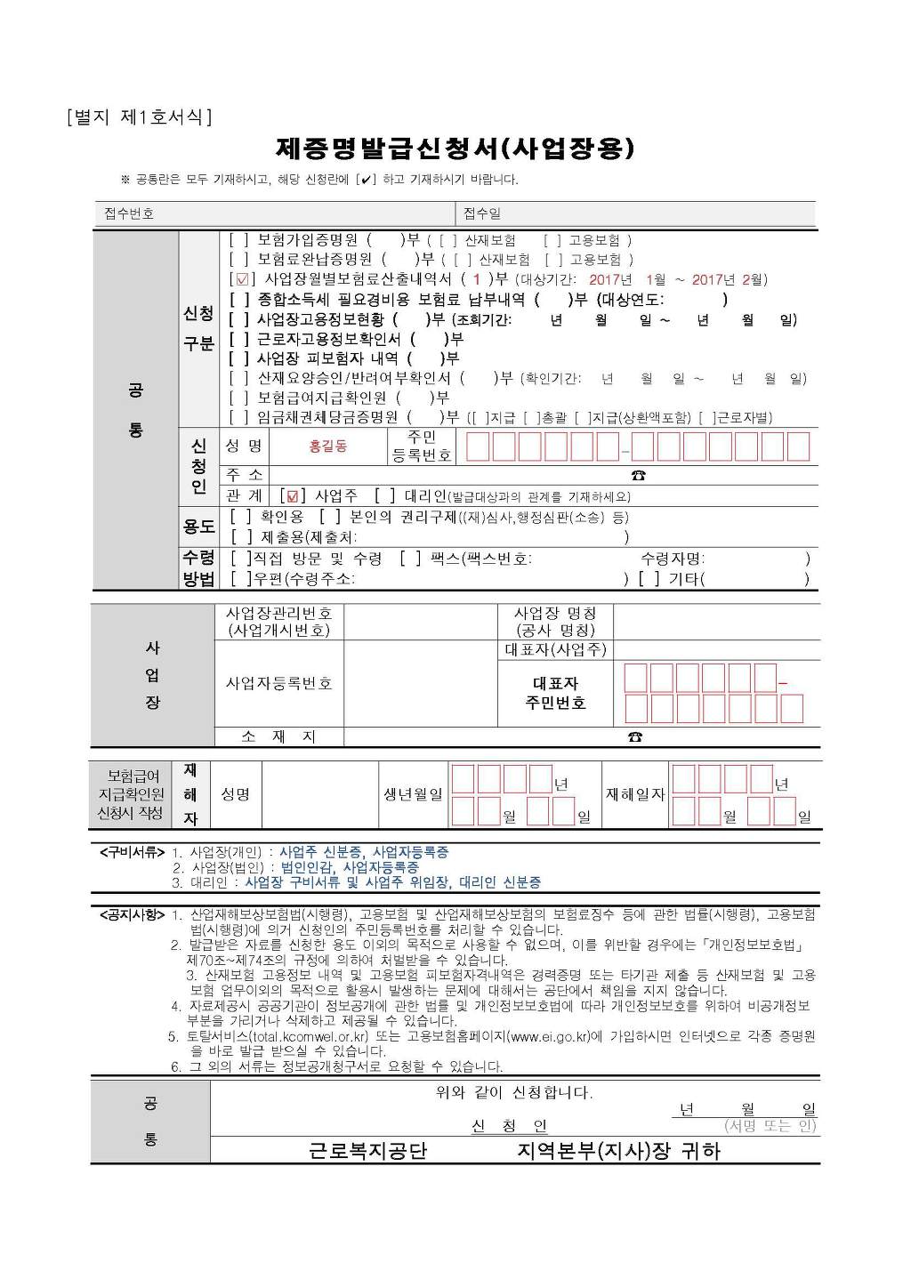 고용보험,산재보험은 근로복지공단에 첨부서류와 함께 제증명 발급신청서 팩스로 전송 하자마자 고용주가 전화하여 팩스수신가능