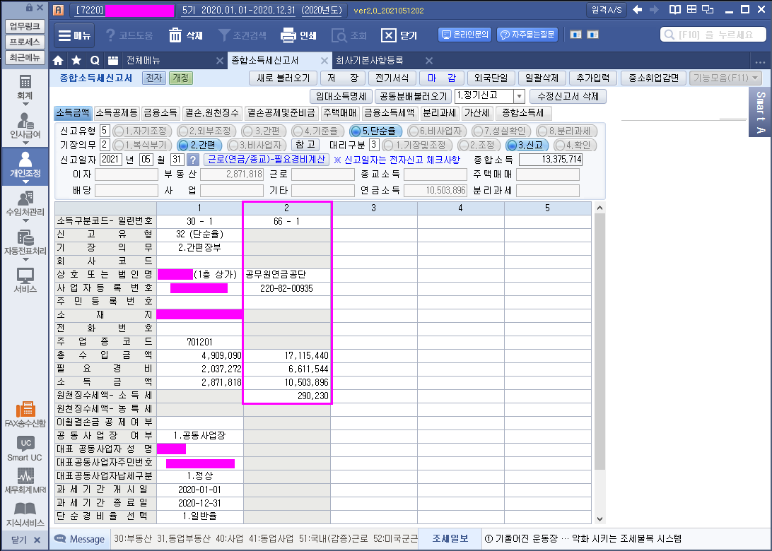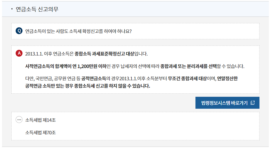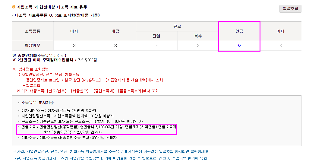 연금소득 : ▶연금연말정산(공적연금) 총연금액 5,166,666원 이상,