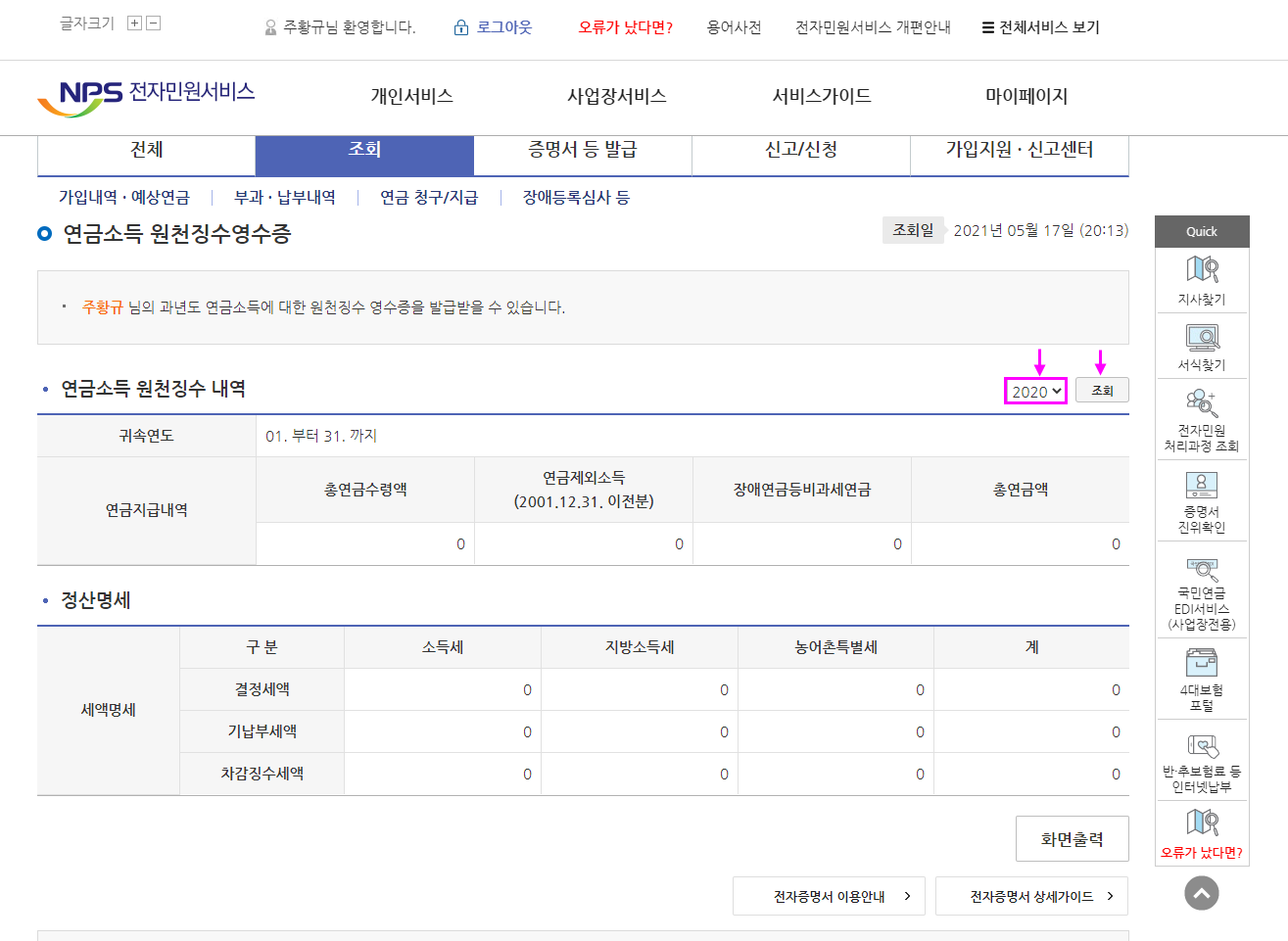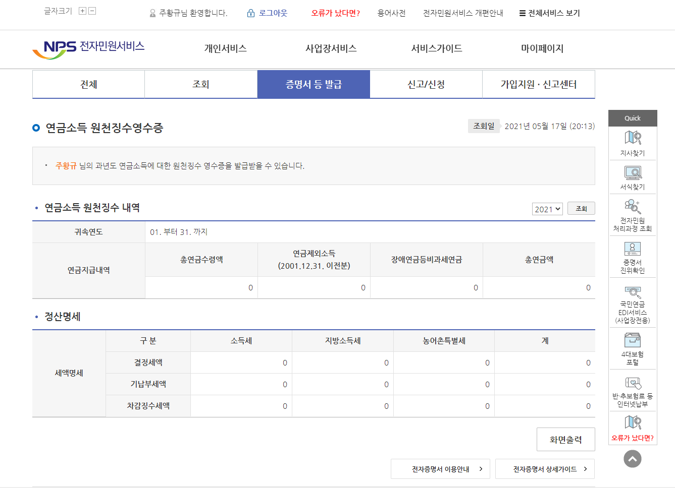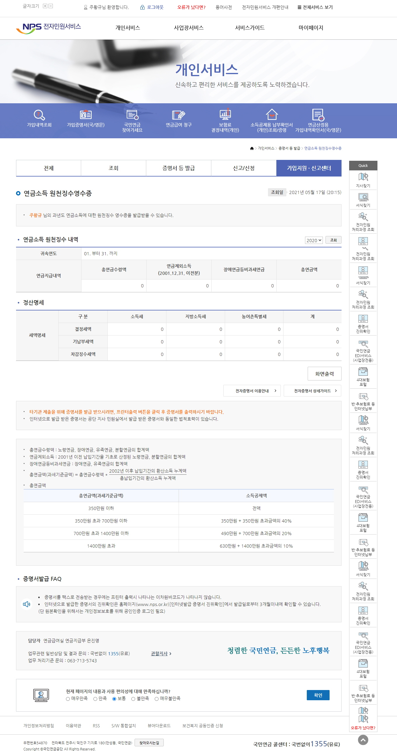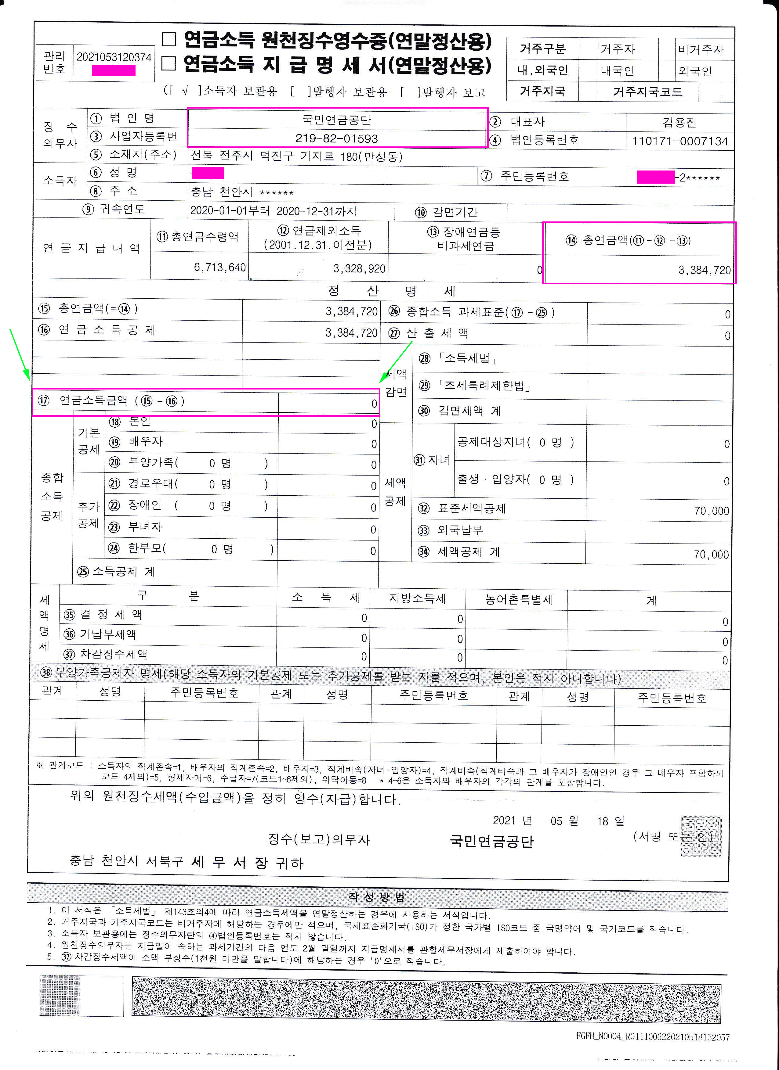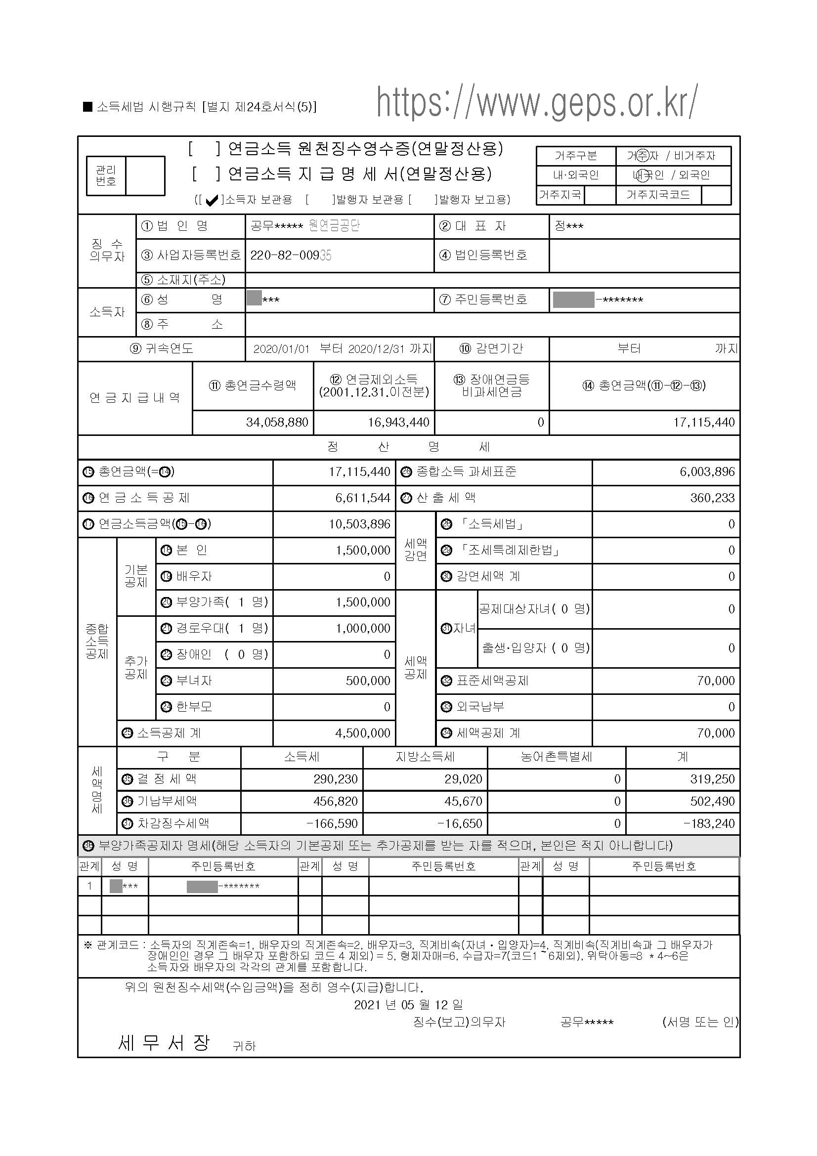 연금소득 원천징수영수증 공무원연금공단 220-82-00935 https://www.geps.or.kr/ 국민연금전자민원서비스