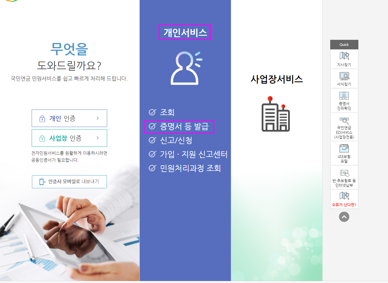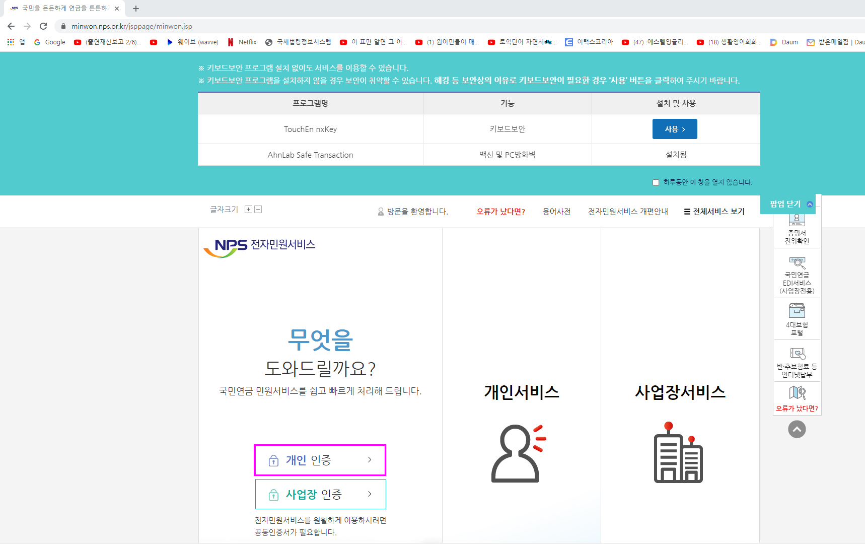 국민연금 전자민원서비스 NPS 전자민원서비스