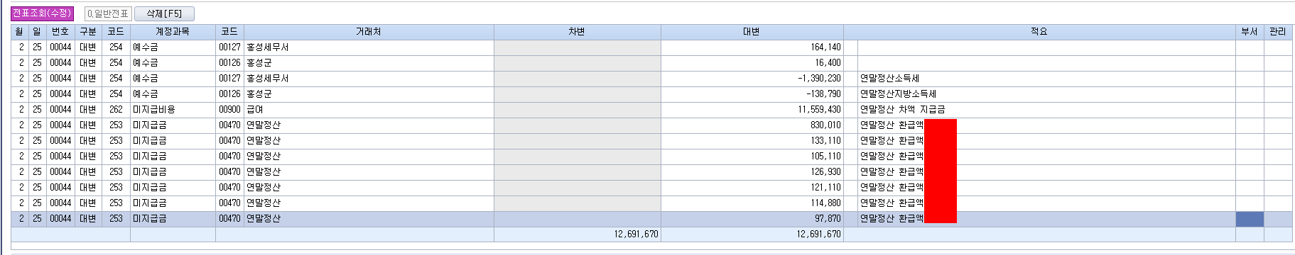 2월분 급여대장에 연말정산반영 안한 경우 소득자료제출집계표(관리용) 필요