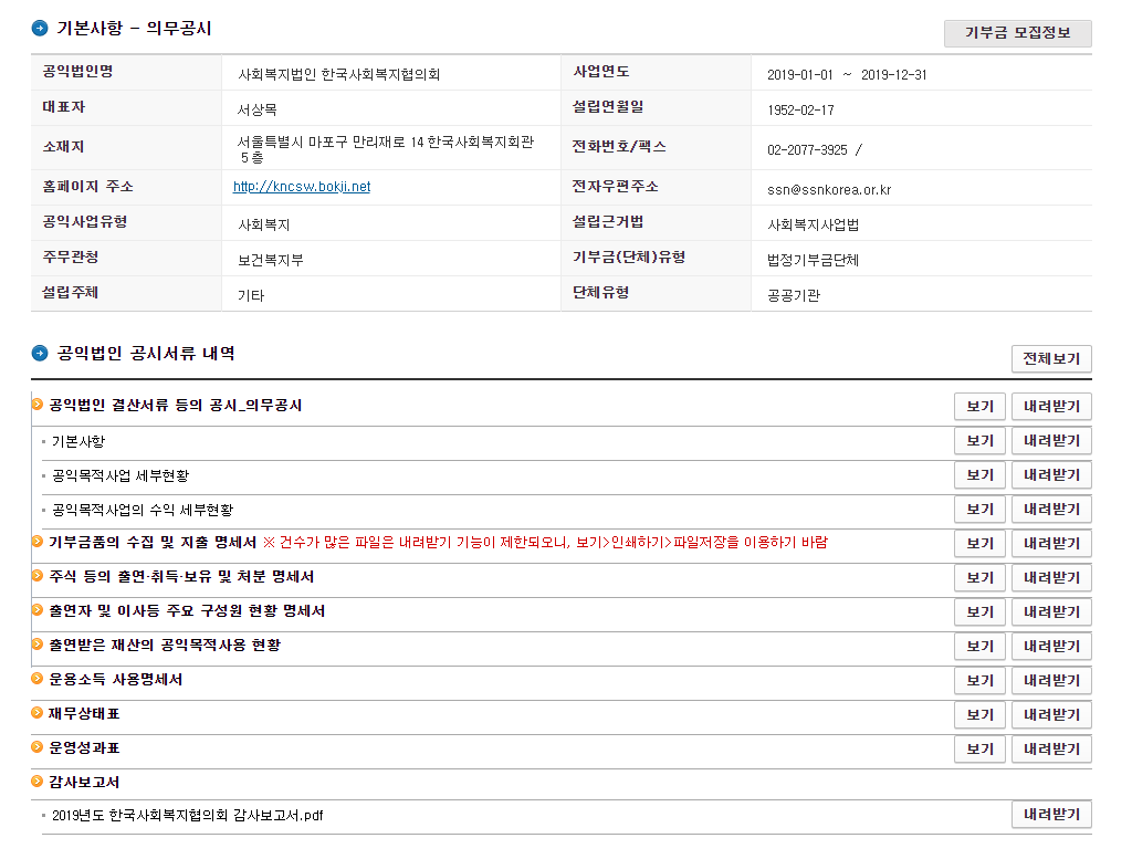 결산서류 등 공시 / 기부금 모금액 및 활용실적 공개