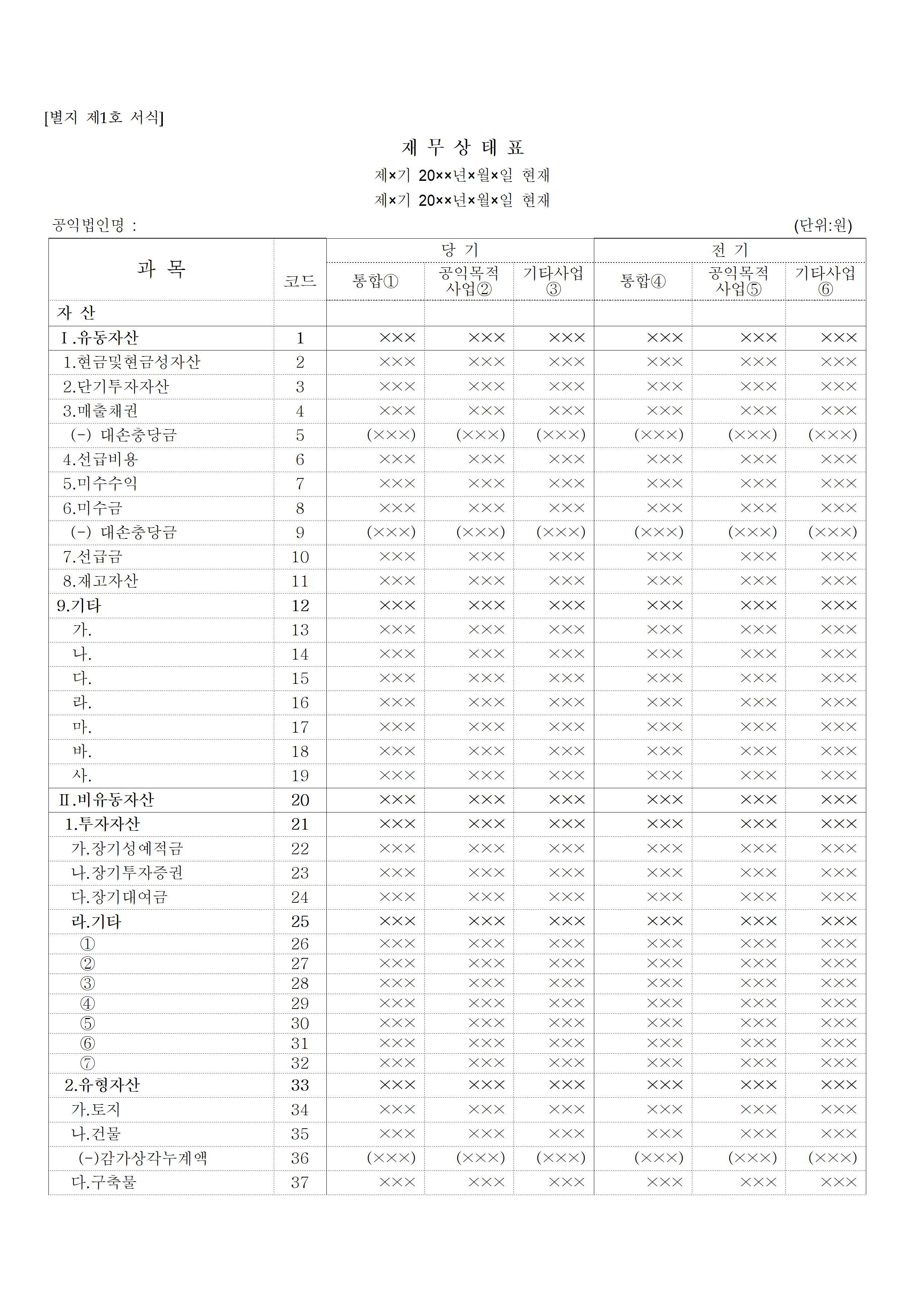 - xlsx 파일 2021-04-13 공익법인 출연재산 등에 대한 보고서 , 결산서류 공시 표준서식 및 재무제표(재무상태표,운영성과표) - 주황규.xlsx 다운로드
