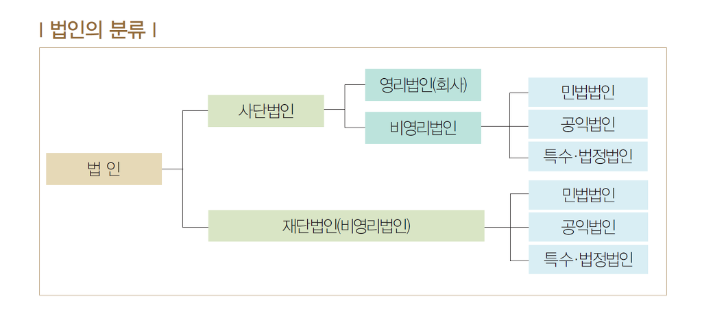 구성요소 분류 : 사단법인 vs 재단법인 , 영리성분류 : 영리법인 , 비영리법인 설립근거분류 : 상법법인,민법법인,공익법인,특수법인 작성자Jayden Ju.|작성시간19.03.22|조회수253 목록 댓글 0 글자크기 작게가 글자크기 크게가 다음검색 현재 게시글 추가 기능 열기 북마크 공유하기 신고 센터로 신고 댓글 댓글 0 댓글쓰기 답글쓰기 댓글 리스트