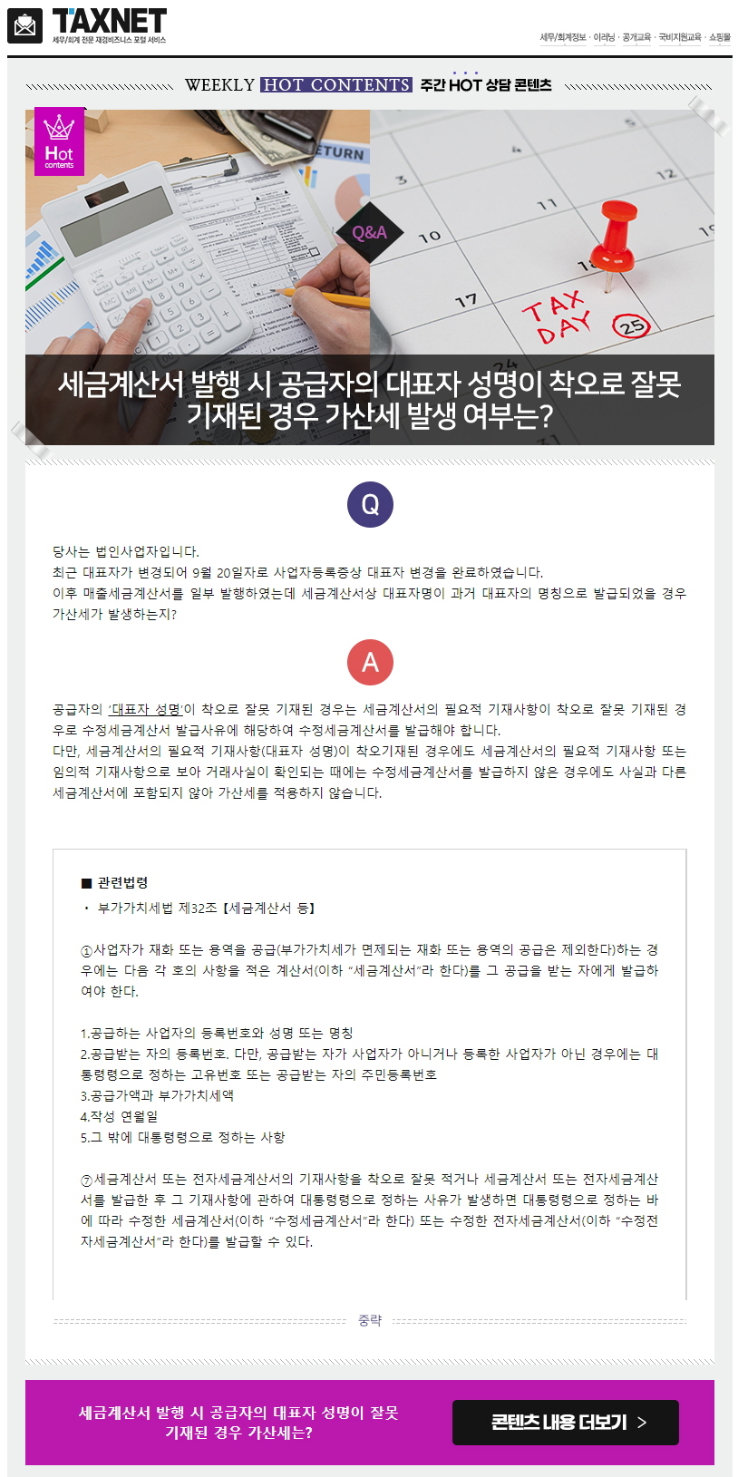 세금계산서 발행 시 공급자의 대표자 성명이 착오로 잘못 기재된 경우 가산세 발생 여부는? 작성자주황규|작성시간21.11.16|조회수356 목록 댓글 0 글자크기 작게가 글자크기 크게가 다음검색 현재 게시글 추가 기능 열기 북마크 공유하기 신고 센터로 신고 댓글 댓글 0 댓글쓰기 답글쓰기 댓글 리스트