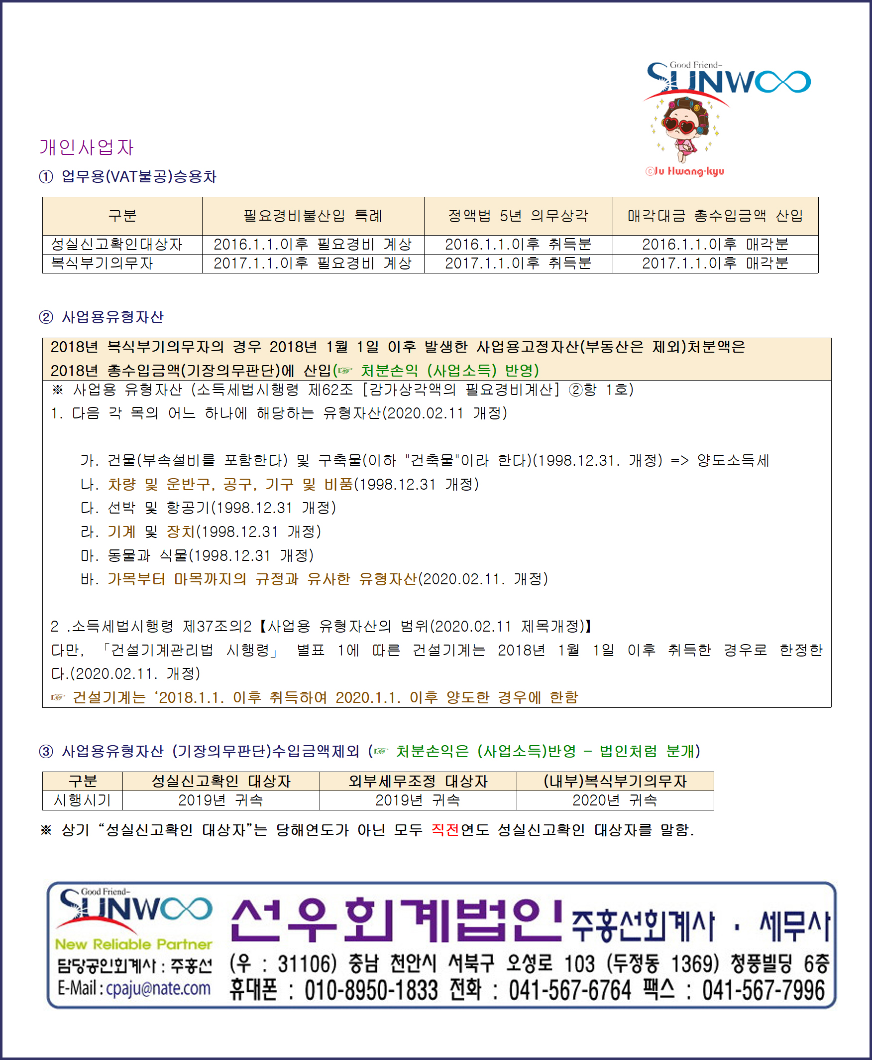 3. 매각대금 총수입금액산입 : 성실신고확인대상사업자는 2016.1.1.이후, 복식부기의무자는 2017.1.1.이후 매각분 부터