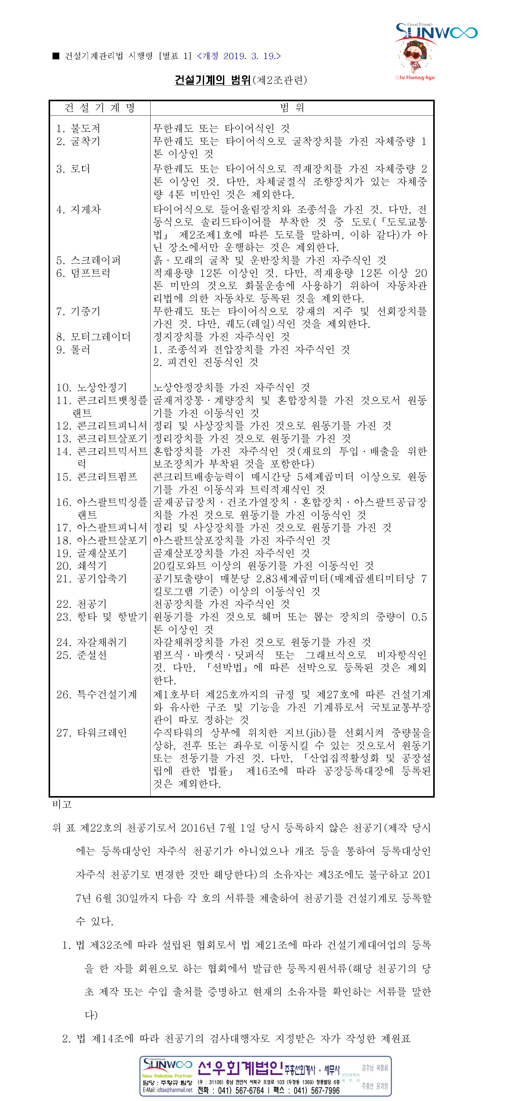 | 다만, 「건설기계관리법 시행령」 별표 1에 따른 건설기계는 2018년 1월 1일 이후 취득한 경우로 한정한다.(2020.02.11 개정) |