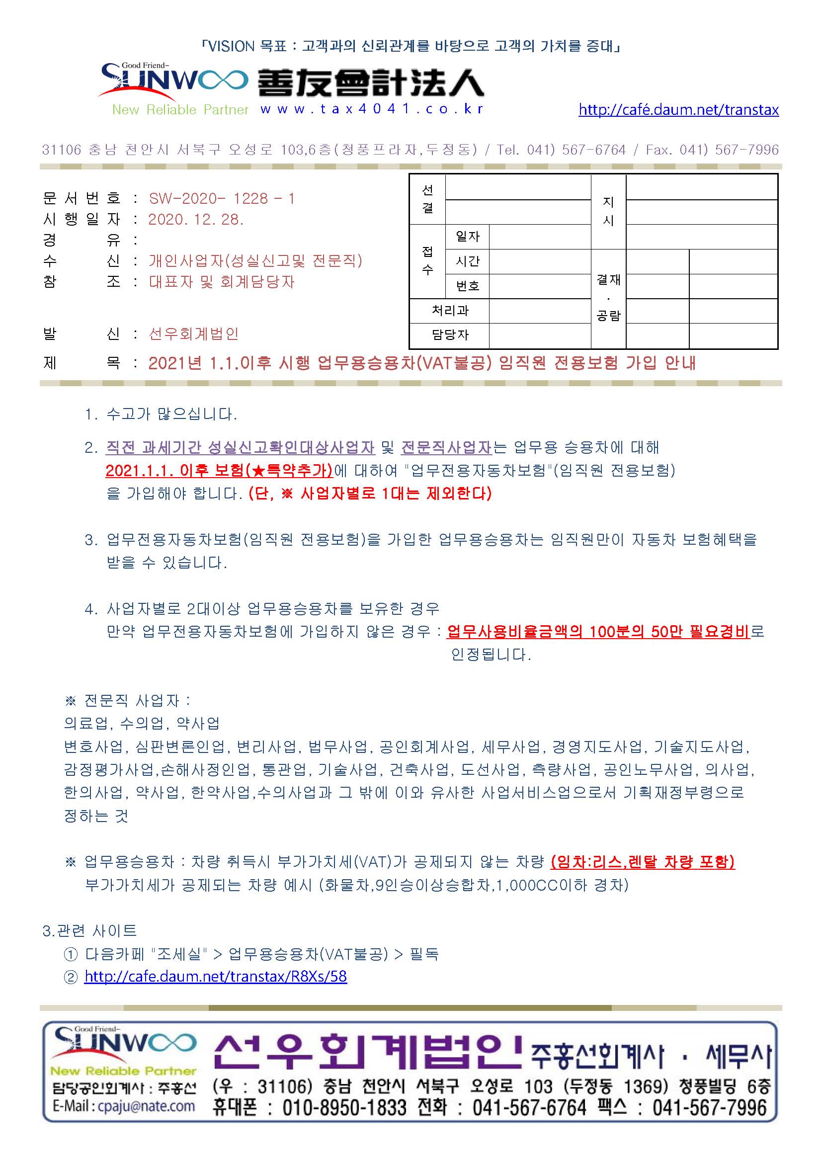 - 업무용 승용차 2대이상일 경우 ★2021.1.1. 이후 보험 특약추가★ 임직원 전용보험 추가 (보험이 임직원만 적용)